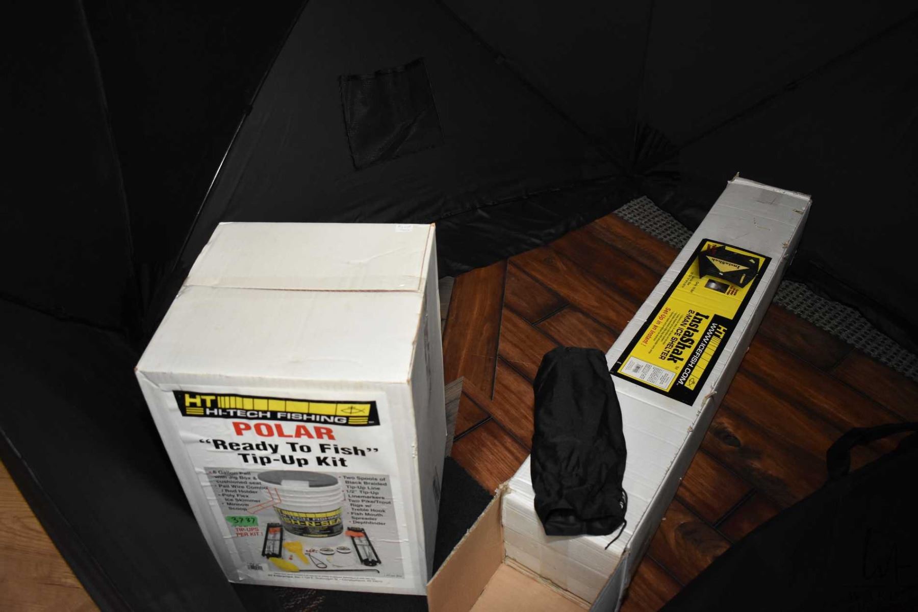 Insta-shack two man ice fishing shelter and Hi-Tech Fishing Polar Ready to Fish tip up kit, both are unused with original packaging