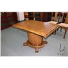 Interesting English oak, draw leaf dining table with large barrel pedestal 30" X 48" plus two 12" le
