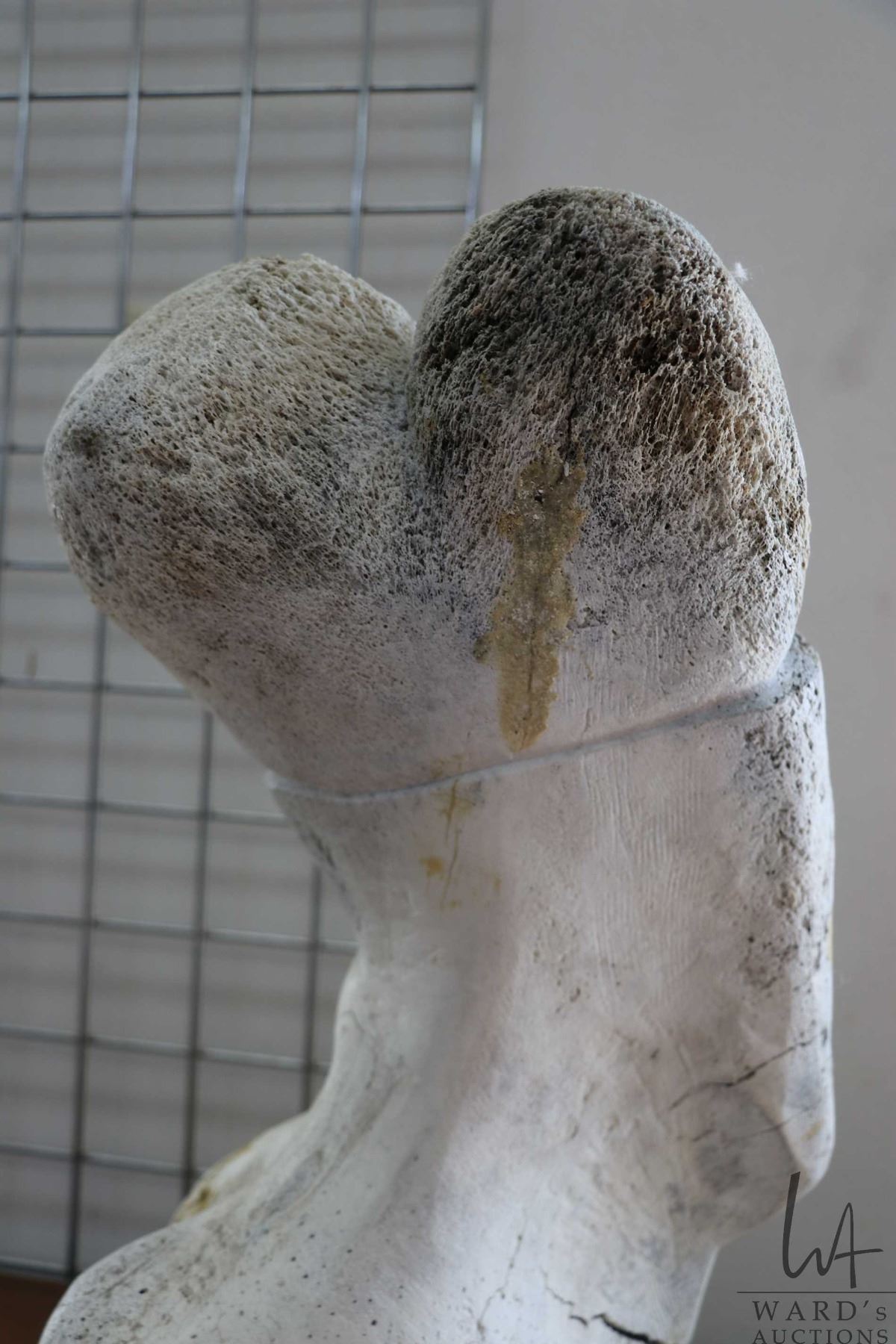 Inuit hand carved "Whale Bone Ghosts" signed in syllabics by artist Judas Ullulaq, 1937-1999, Gjoa Haven, Eskimo Art no. E4-342, 21" in height. Note: No shipping for this lot. Local pickup only