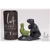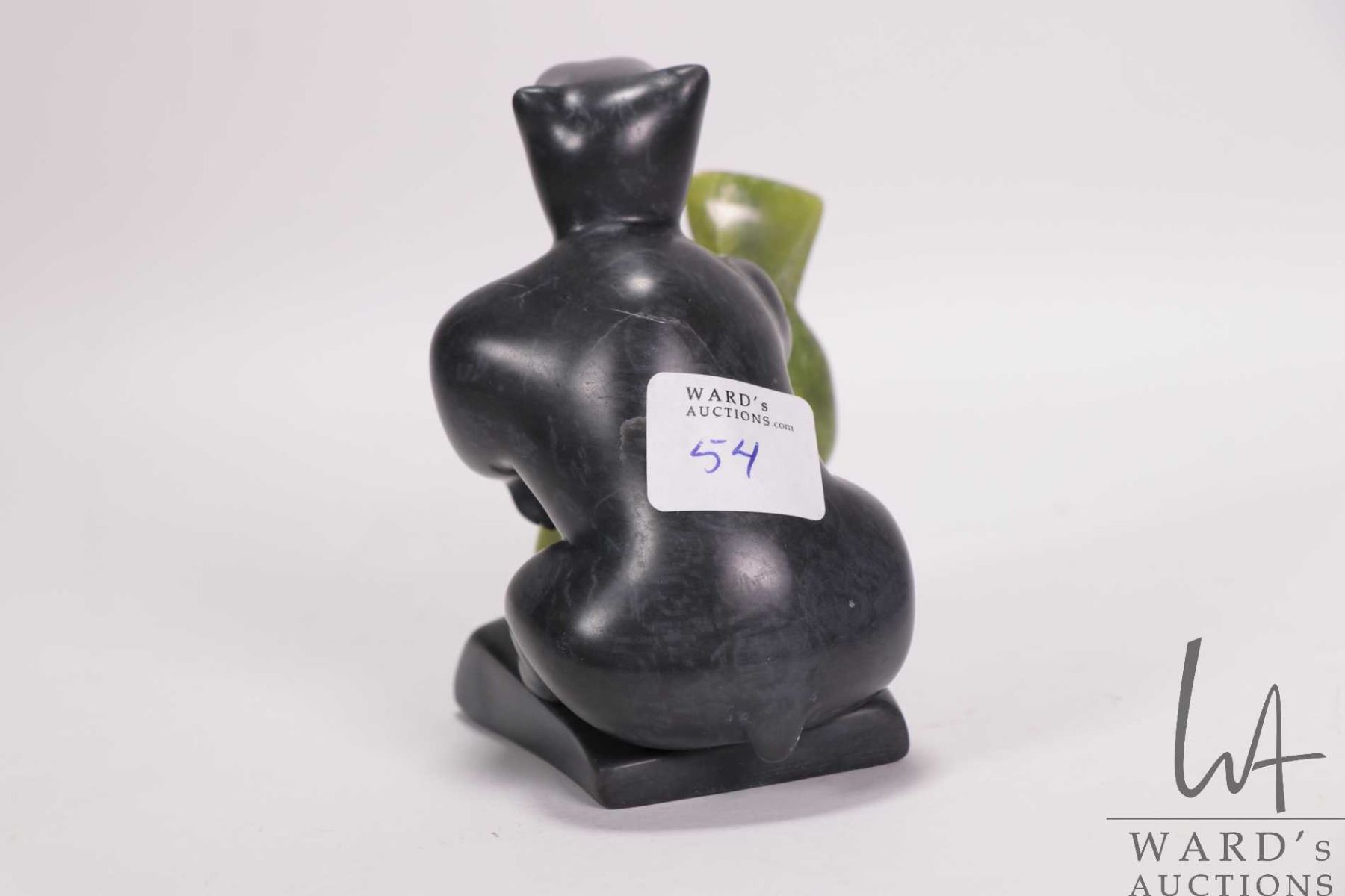 Inuit soapstone carved bear with green soapstone seal, 3 1/2" in height and signed by artist Adamie