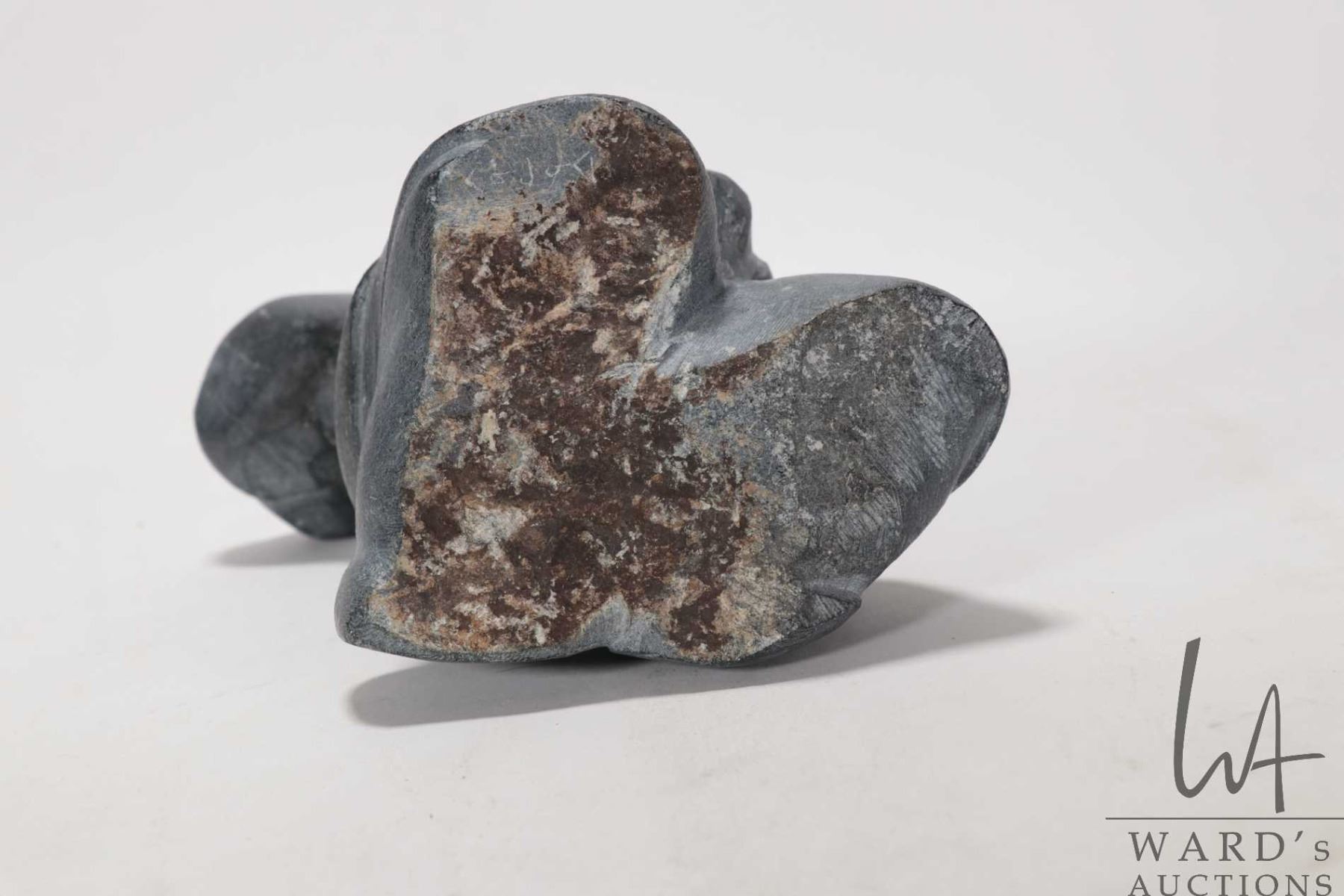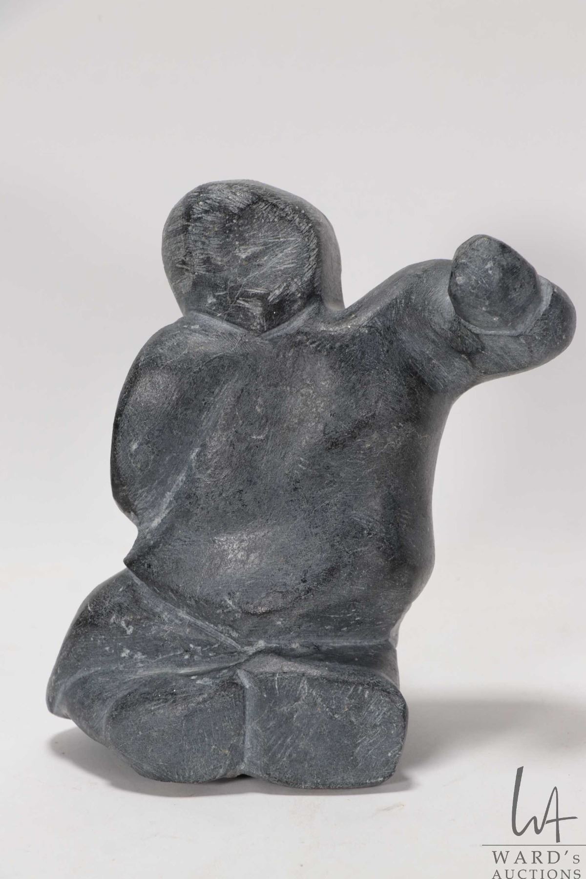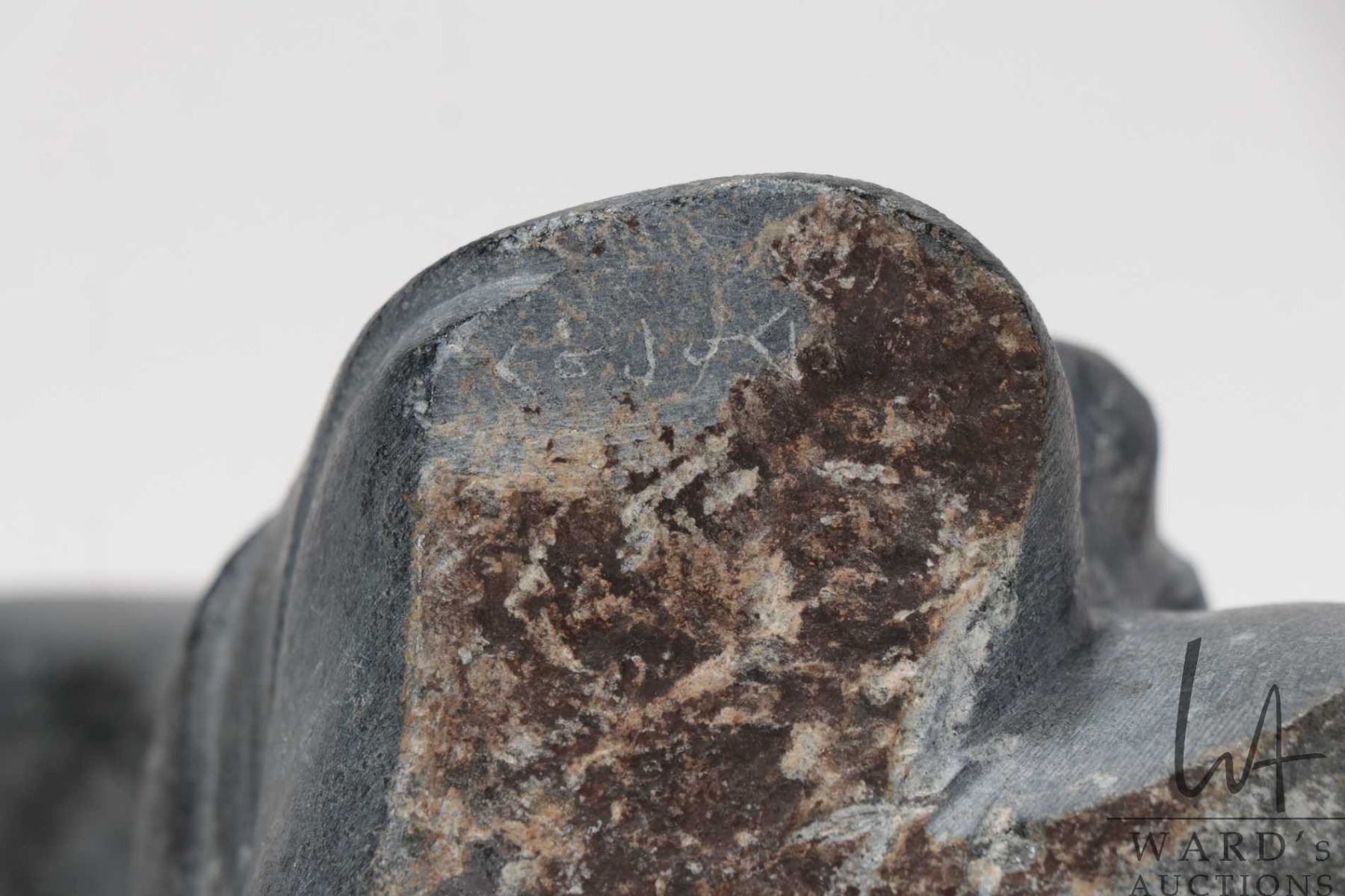 Inuit soapstone carved figure of a man, signed in syllabics, 7 1/2" in height