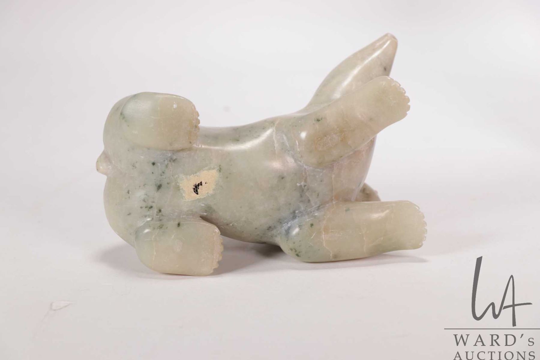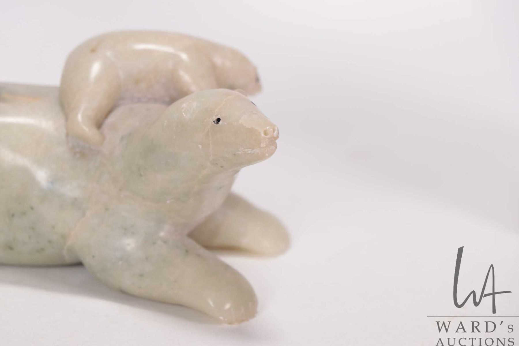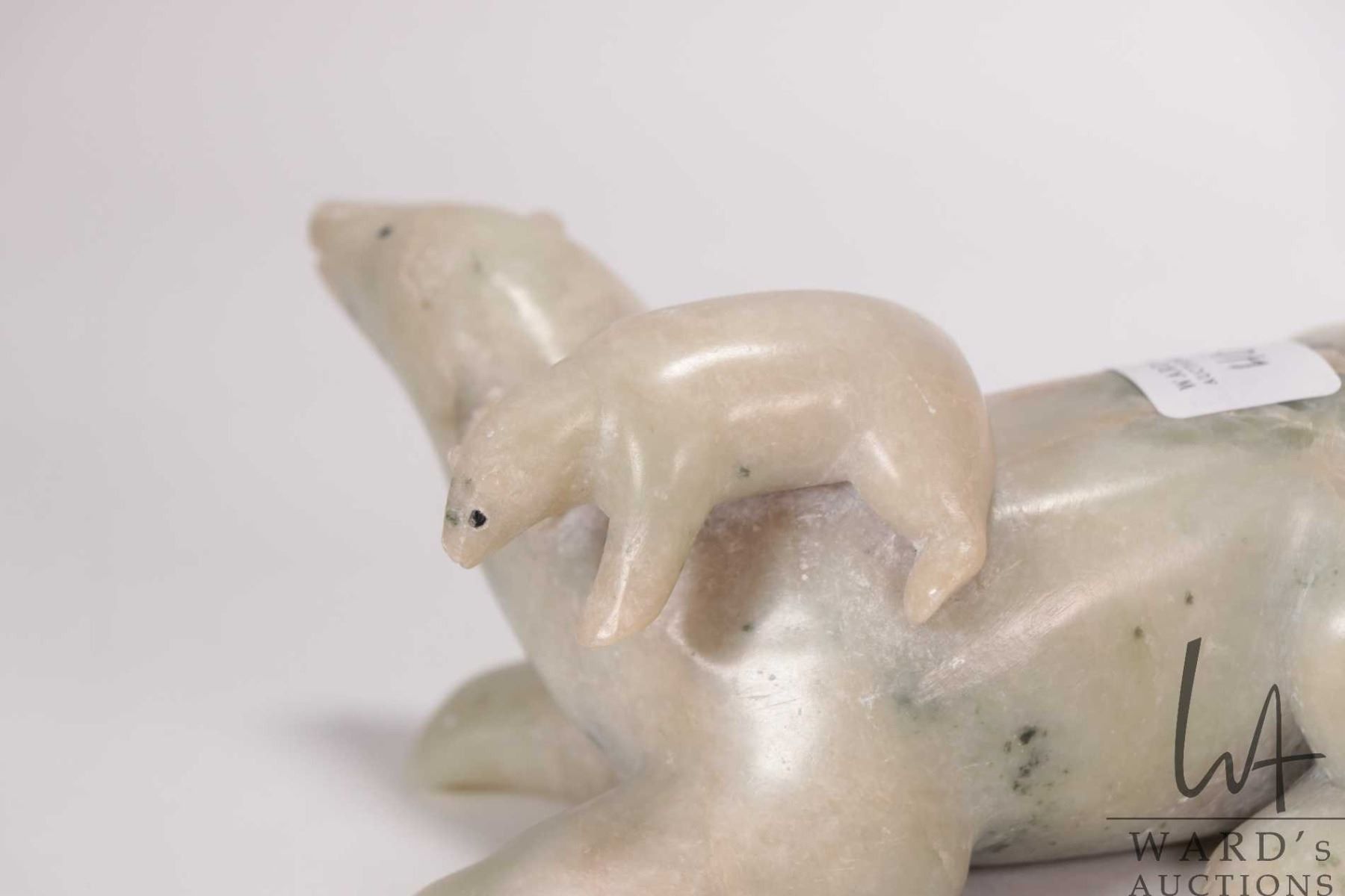 Inuit soapstone carving - Momma ear carrying baby bear, 5" long X 2 1/2"