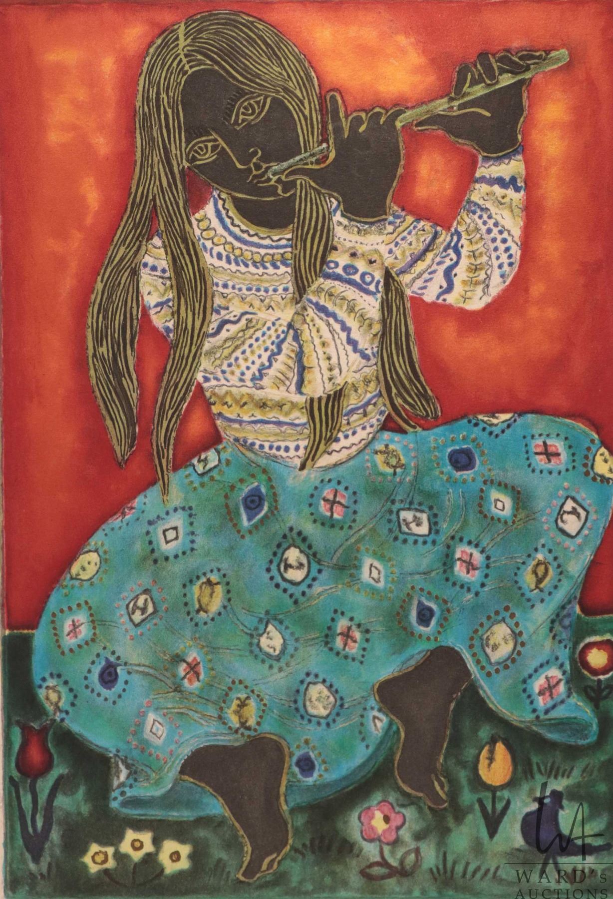 Irene Awret limited edition lithograph, titled "Girl with a Flute", pencil signed by artist 10/25. O