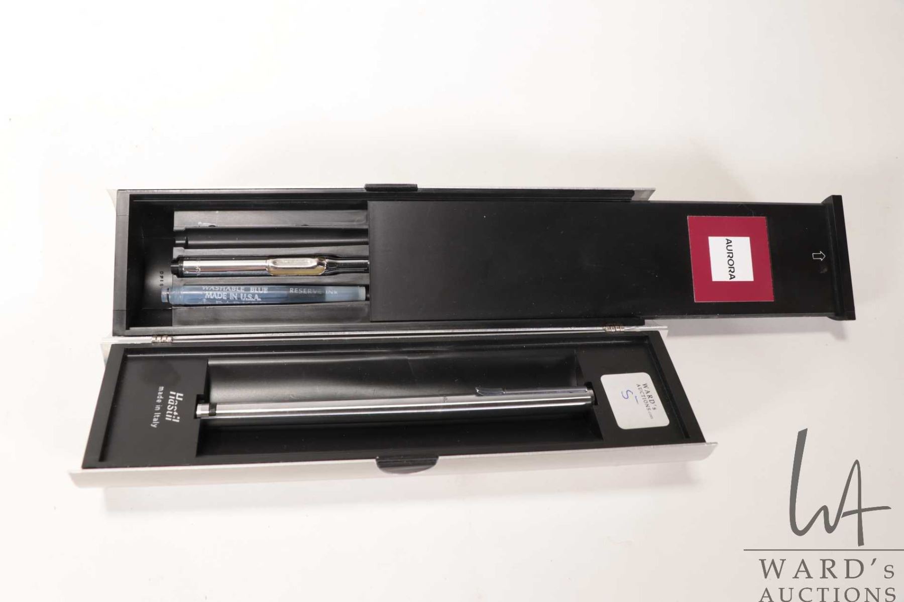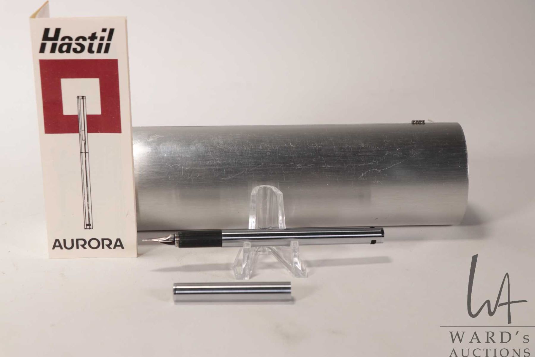 Italian made Aurora Hastil fountain pen with 14kt white gold nib in fitted aluminum case, serial no. XMB672