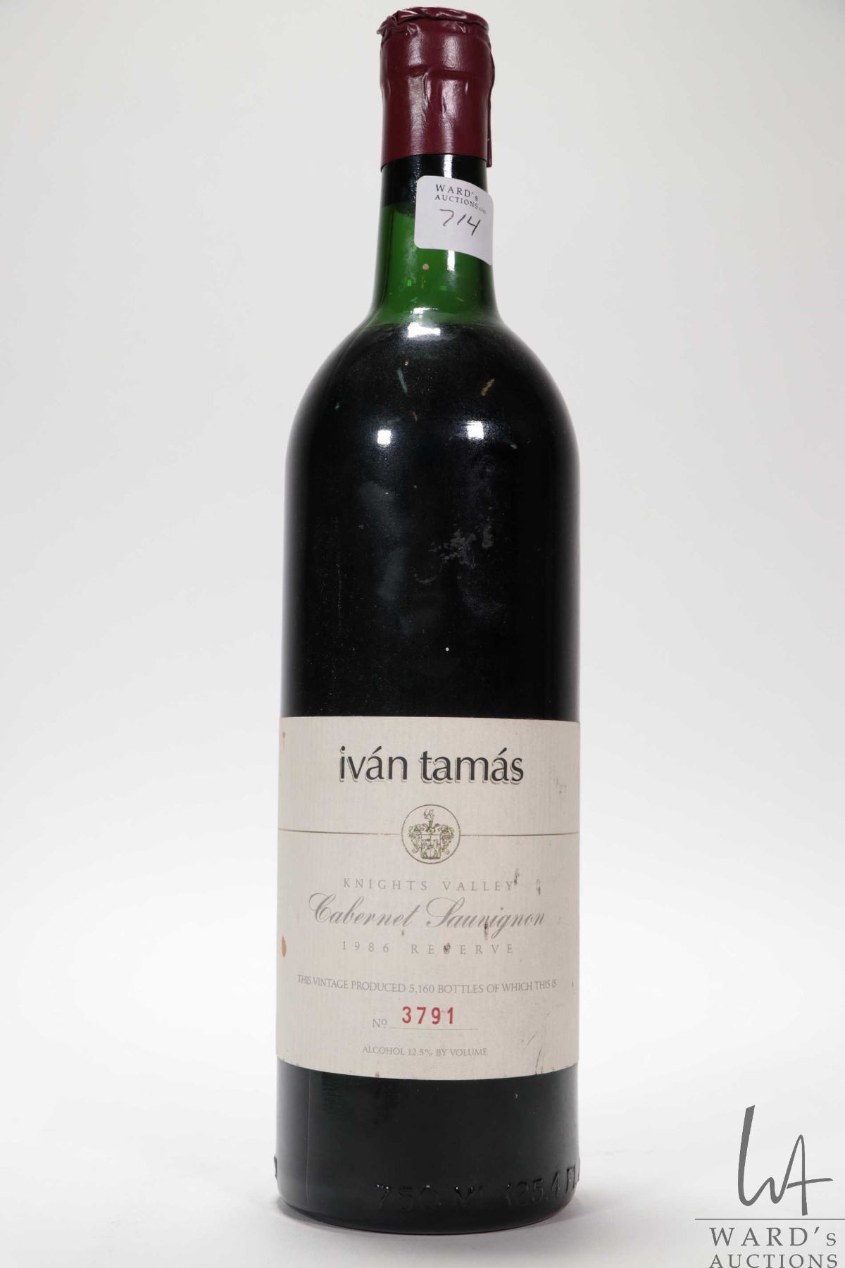 Ivan Tamas/ Knights Valley/ 1986 Reserve/ Cabernet Sauvignon/ No. 3791/ 750ml/ 12.5% ABV NOTE: Alcohol cannot be insured by any courier in Canada. Local pick up recommended. Canadian bidders only