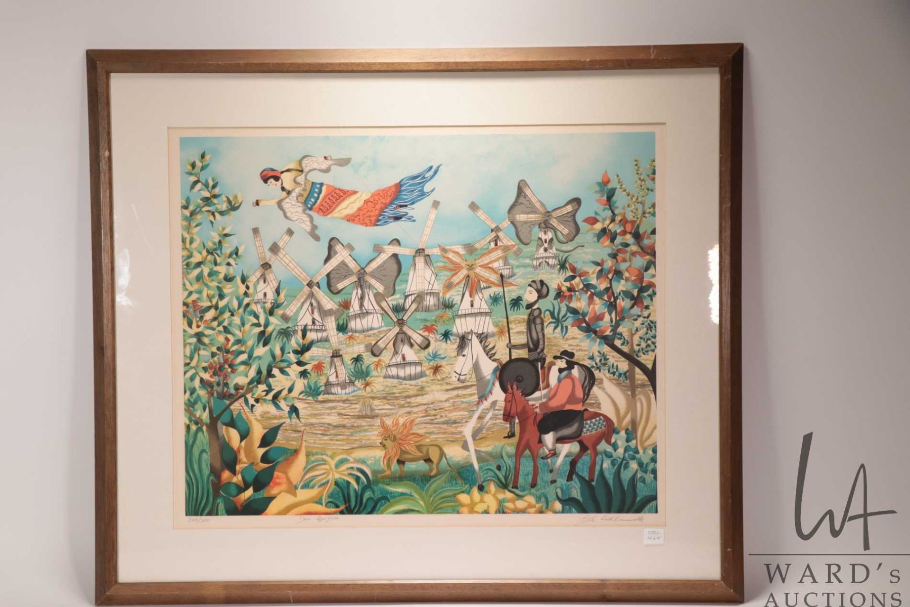 Ivel Weihmiller framed serigraph titled "Don Quixote", pencil signed by artist 243/250. Overall dimensions including frame 28 1/2" X 33". Note: This is too large to ship. Local pickup only
