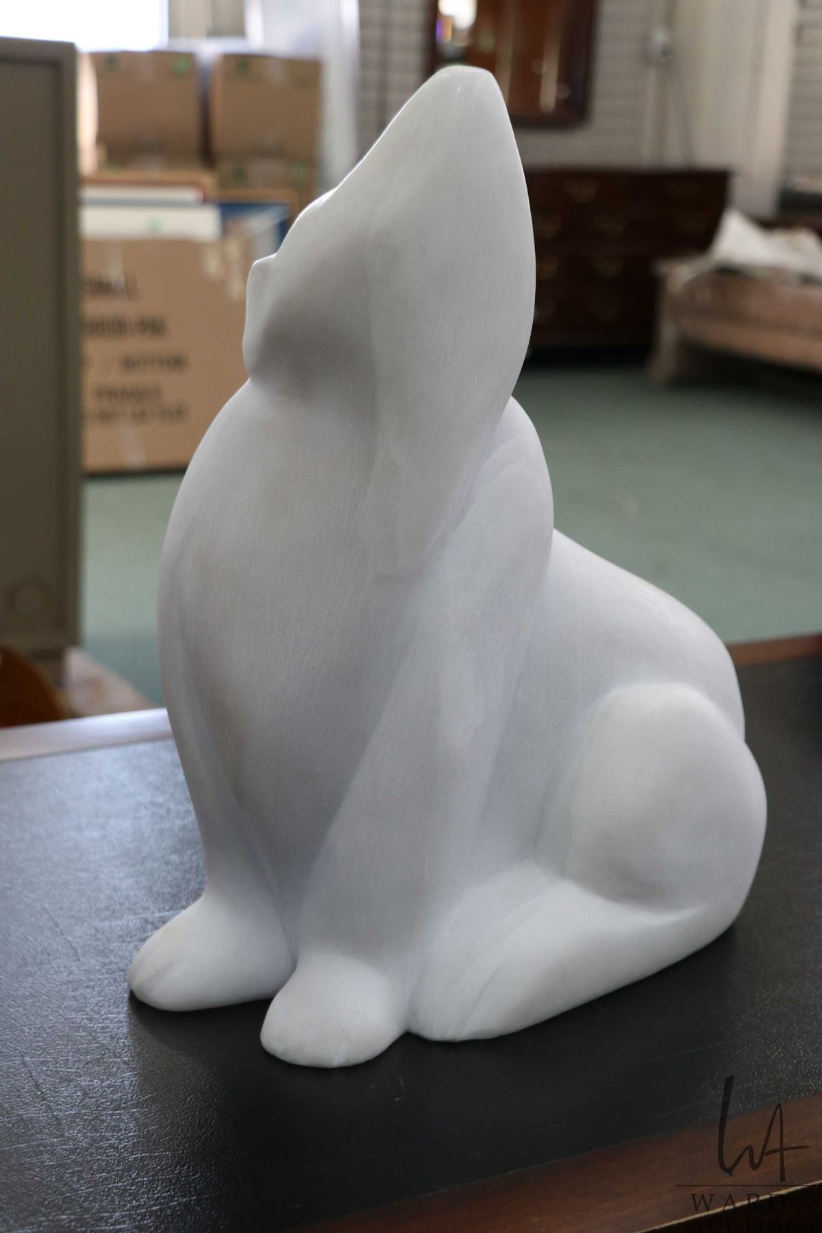 J. W. McKinnon, hand carved marble wolf, numbered on base 23914, 16 1/2" in height