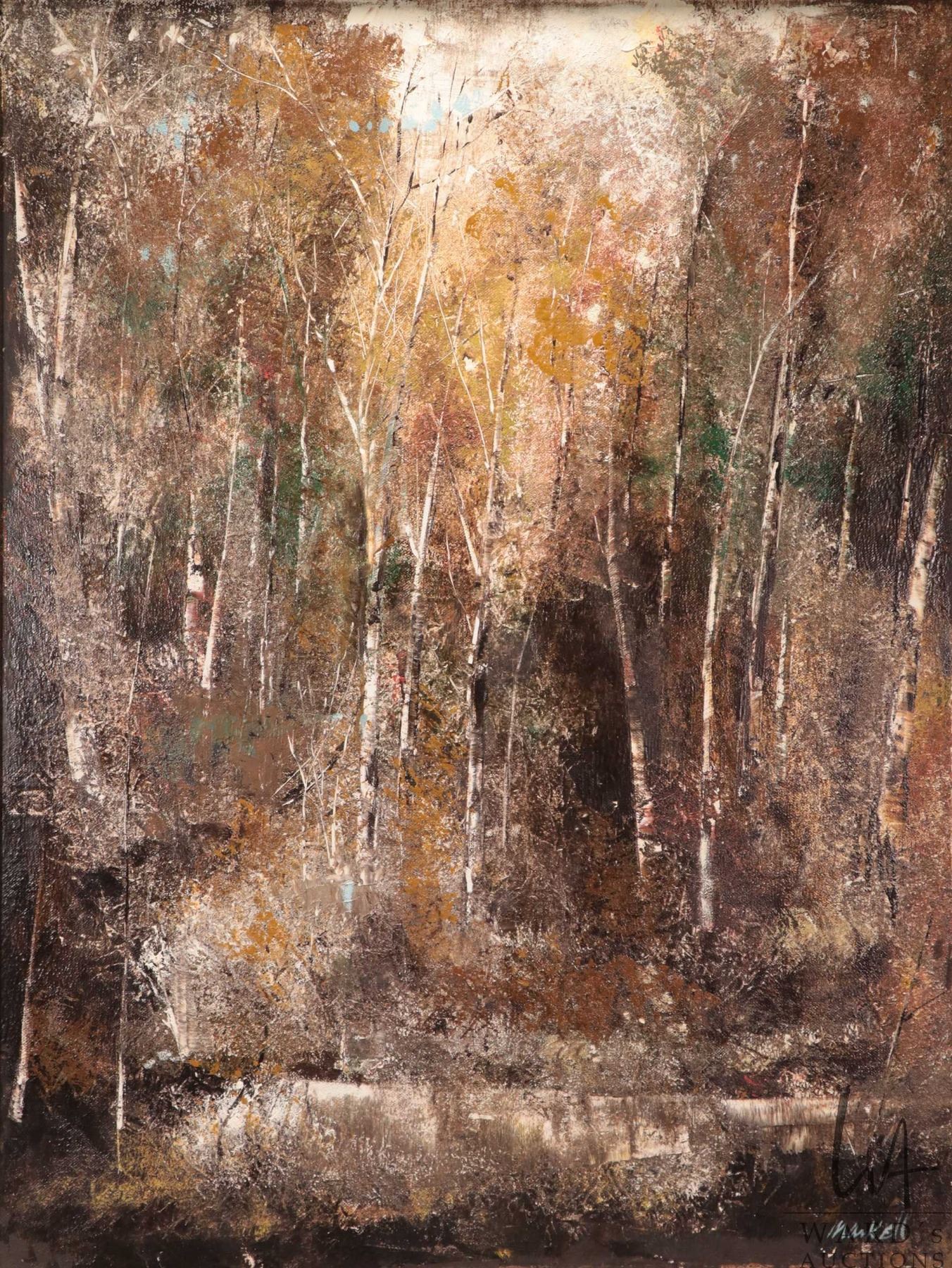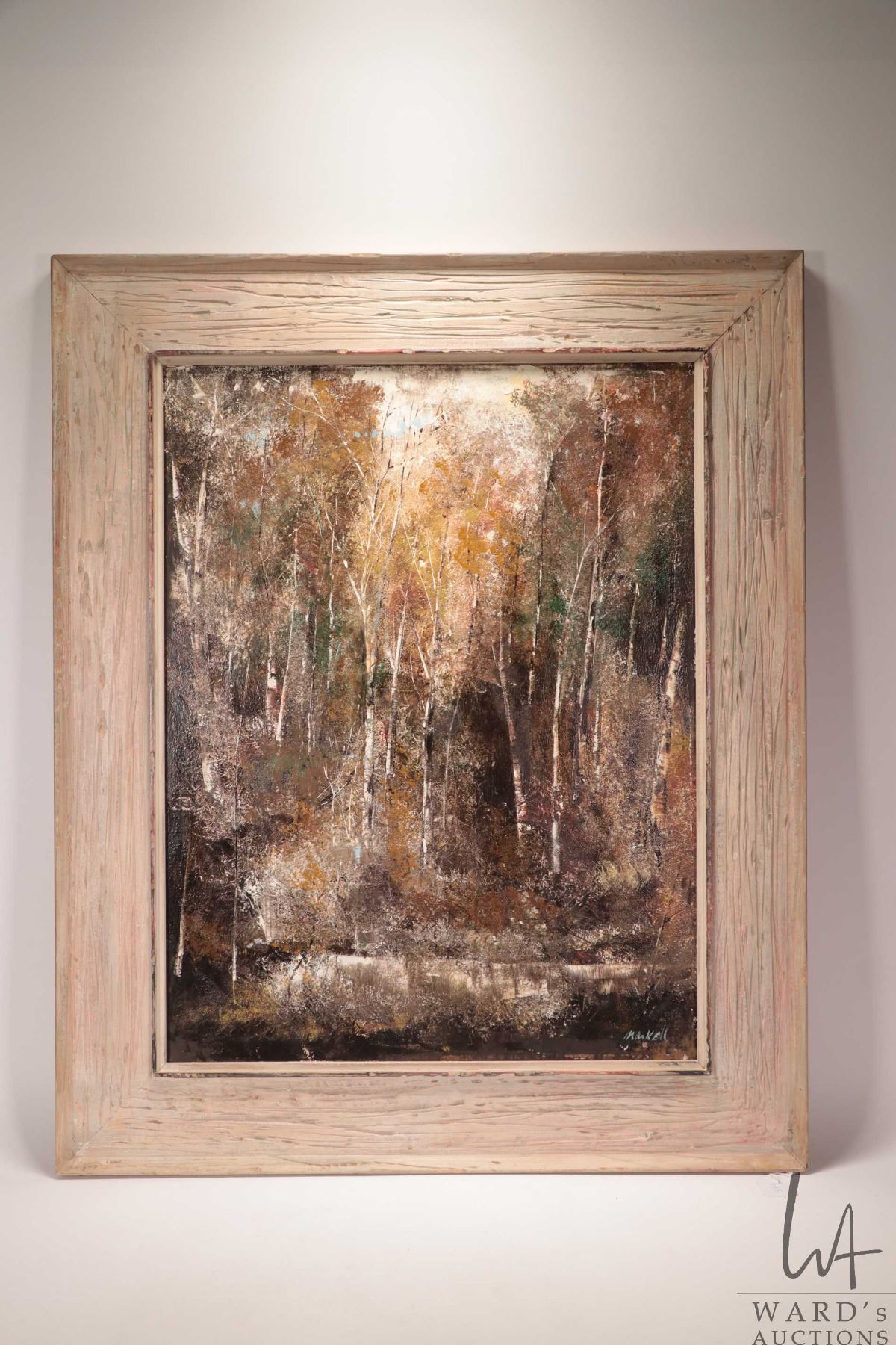 Jack Markell framed original acrylic on canvas painting of a birch tree forest, 25 1/2" X 19 1/2". N