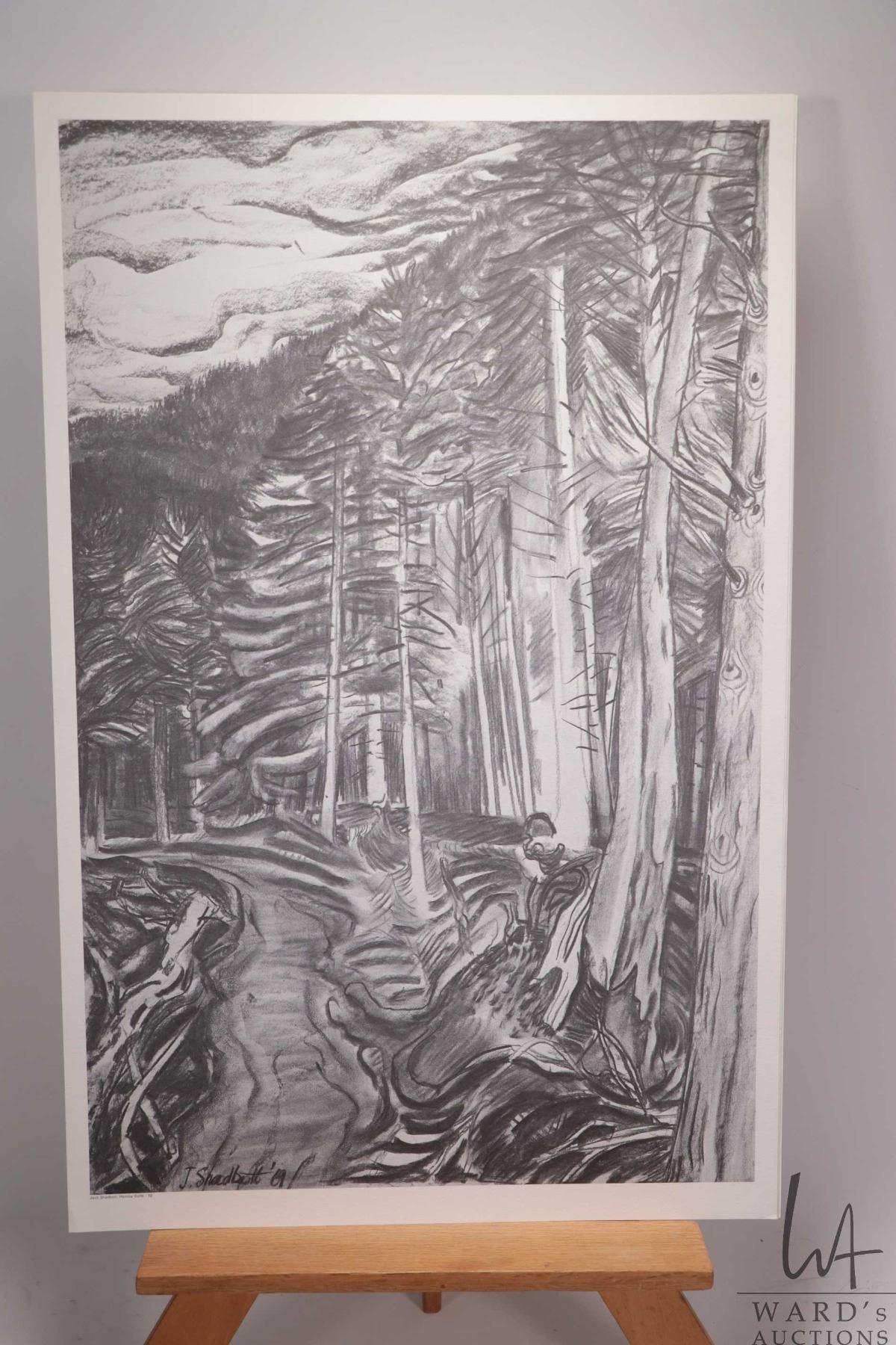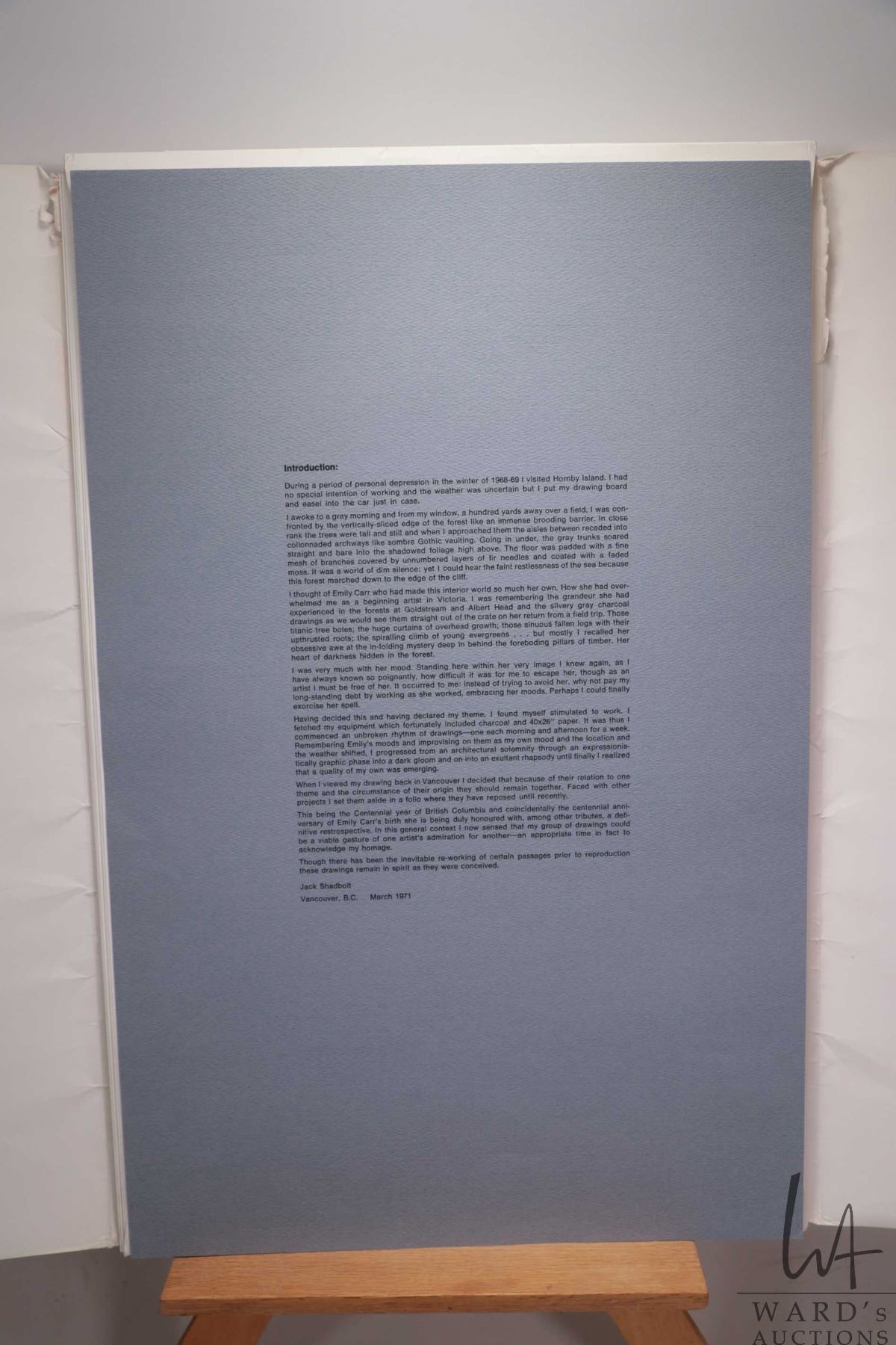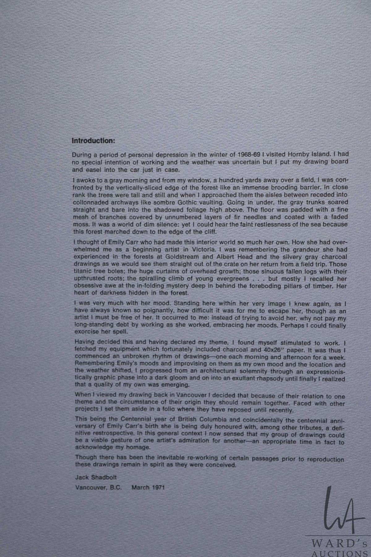 Jack Shadbolt "The Hornby Suite" ( Homage to Emily Carr) fifteen lithograph unframed print set in folio. Created during the winters of 1966-1969 and printed in March 1971. These prints are numbered 1 through 15, this is one of 350 editions printed, it is an unsigned edition, each print is 24" X 15 1/2"