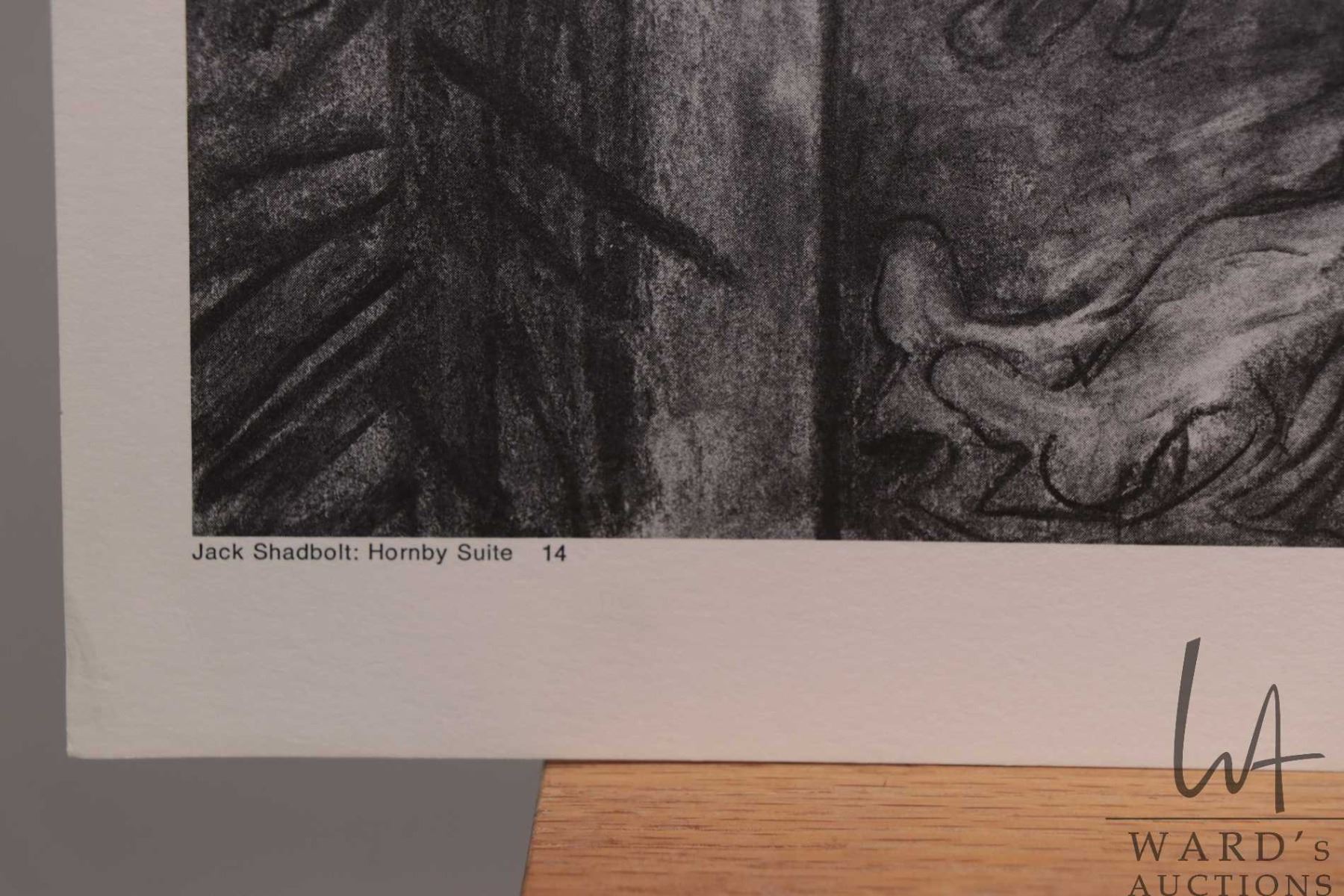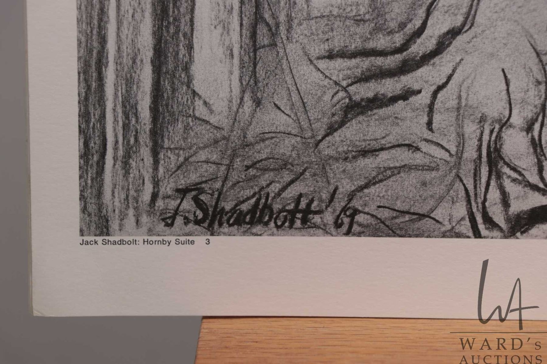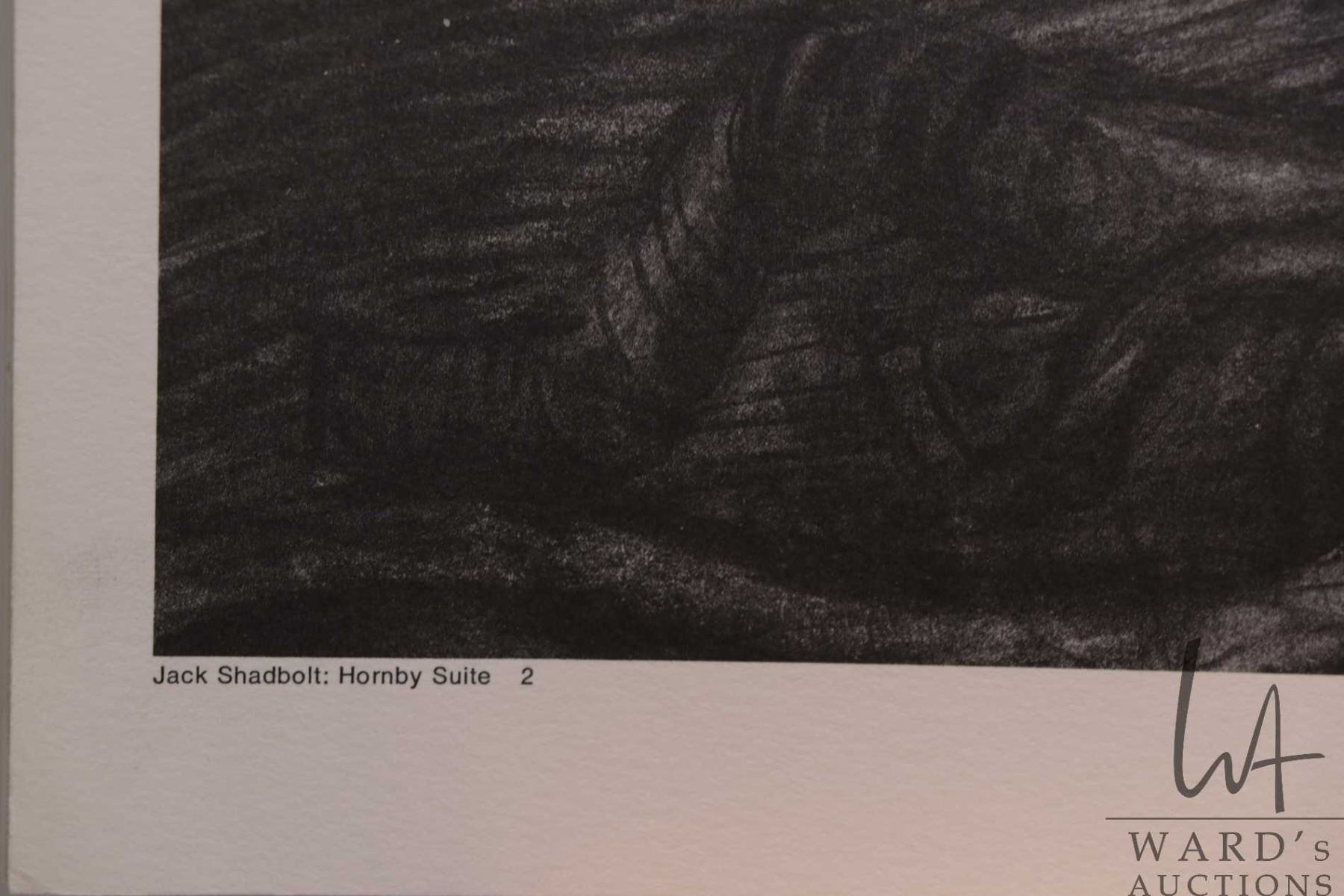 Jack Shadbolt "The Hornby Suite" ( Homage to Emily Carr) fifteen lithograph unframed print set in folio. Created during the winters of 1966-1969 and printed in March 1971. These prints are numbered 1 through 15, this is one of 350 editions printed, it is an unsigned edition, each print is 24" X 15 1/2"