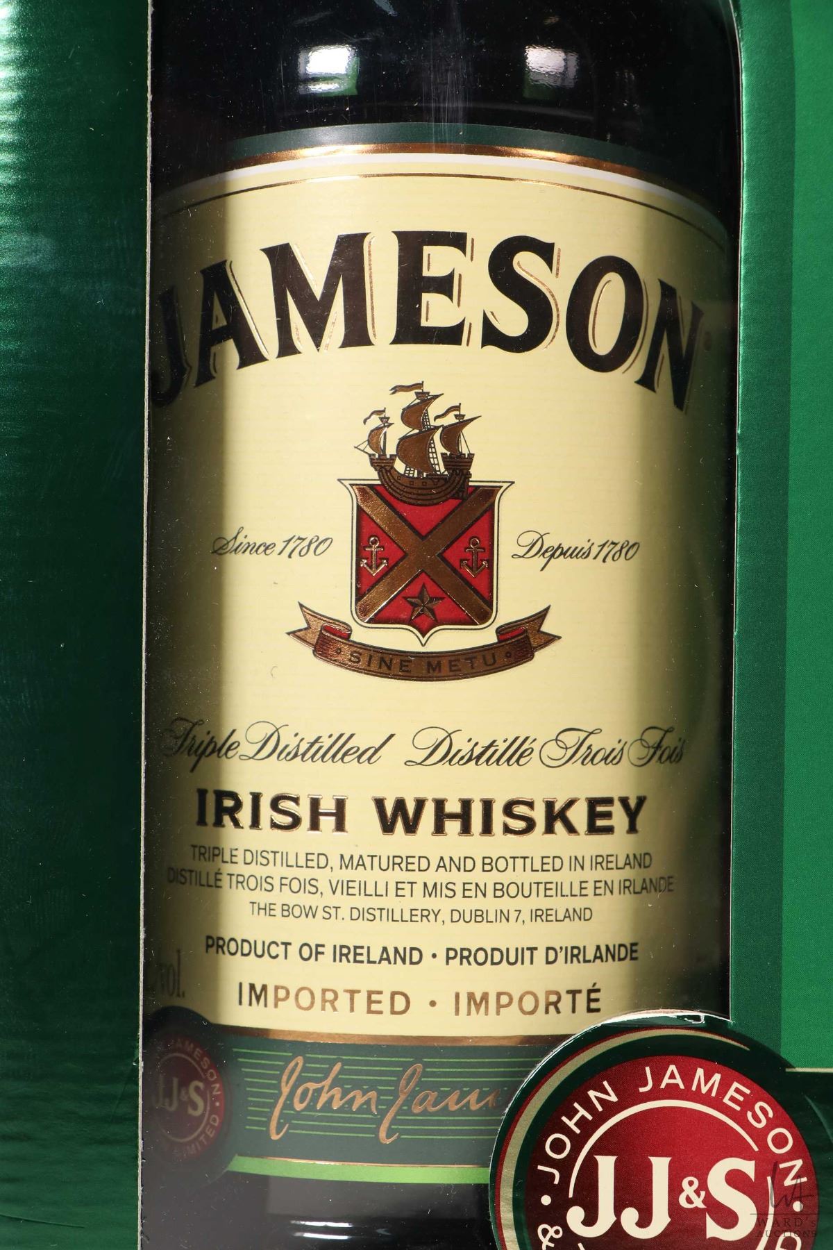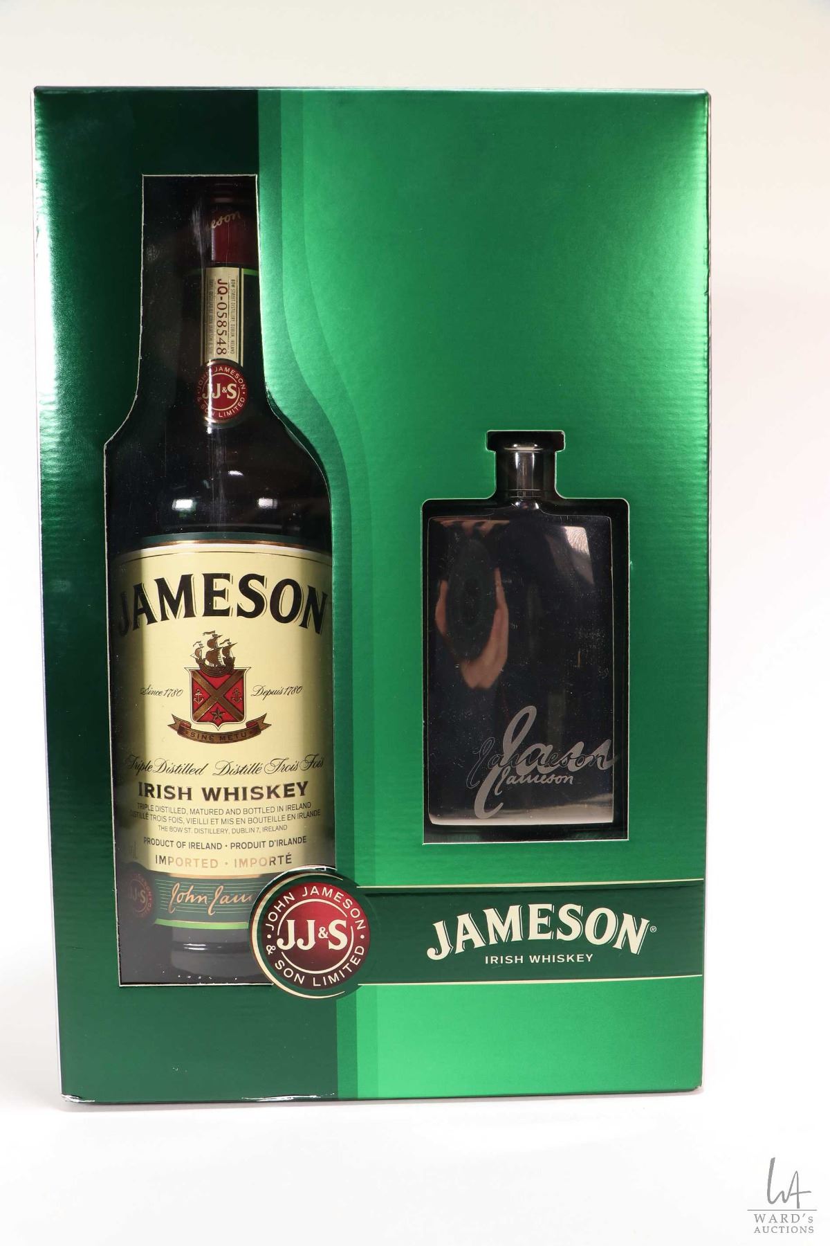 Jameson triple distilled Irish Whisky in 750ml bottle with polished metal flask in presentation box. Note: No Shipping. Local Pickup Only