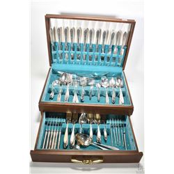 Walnut canteen of Community Plate flatware including twelve knives, ten each of tablespoons, dinner forks and dessert forks, twenty seven teaspoons, s