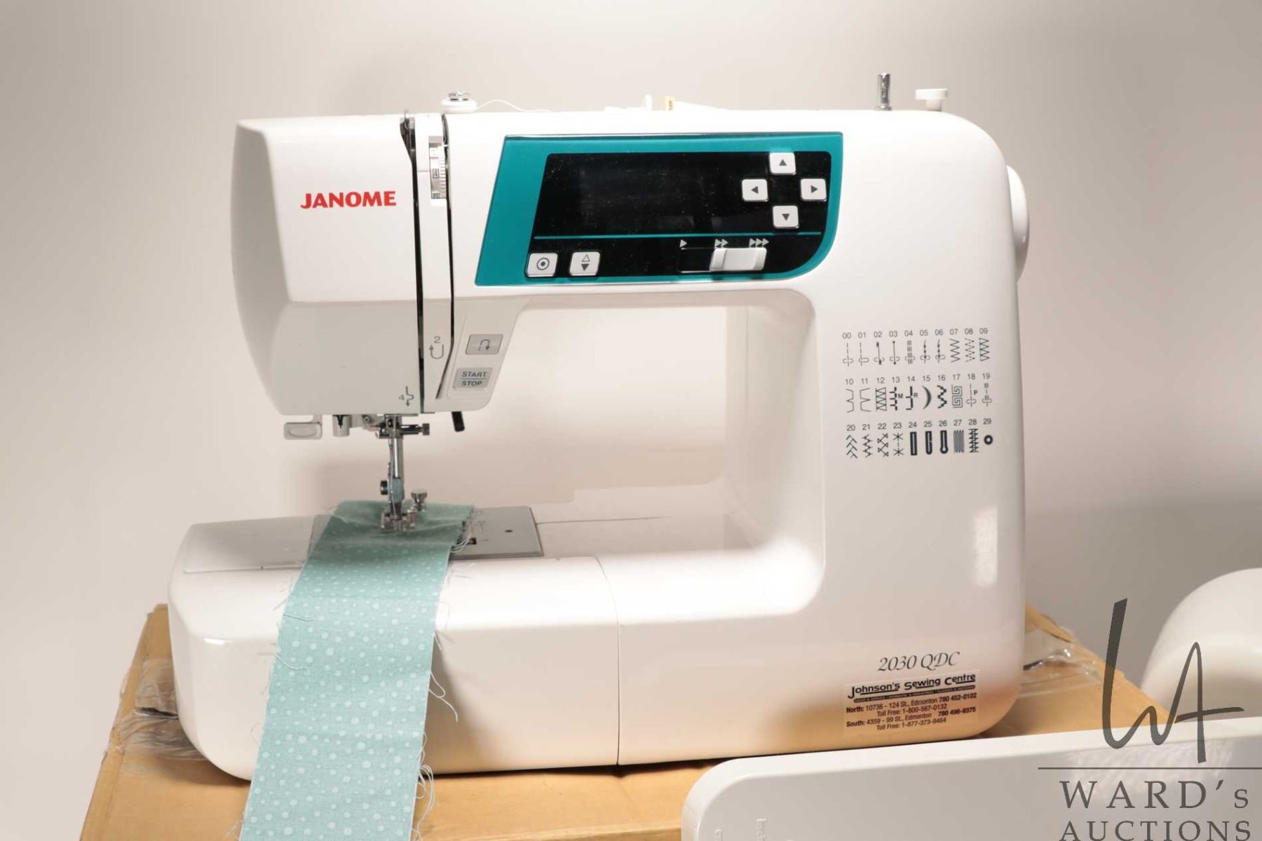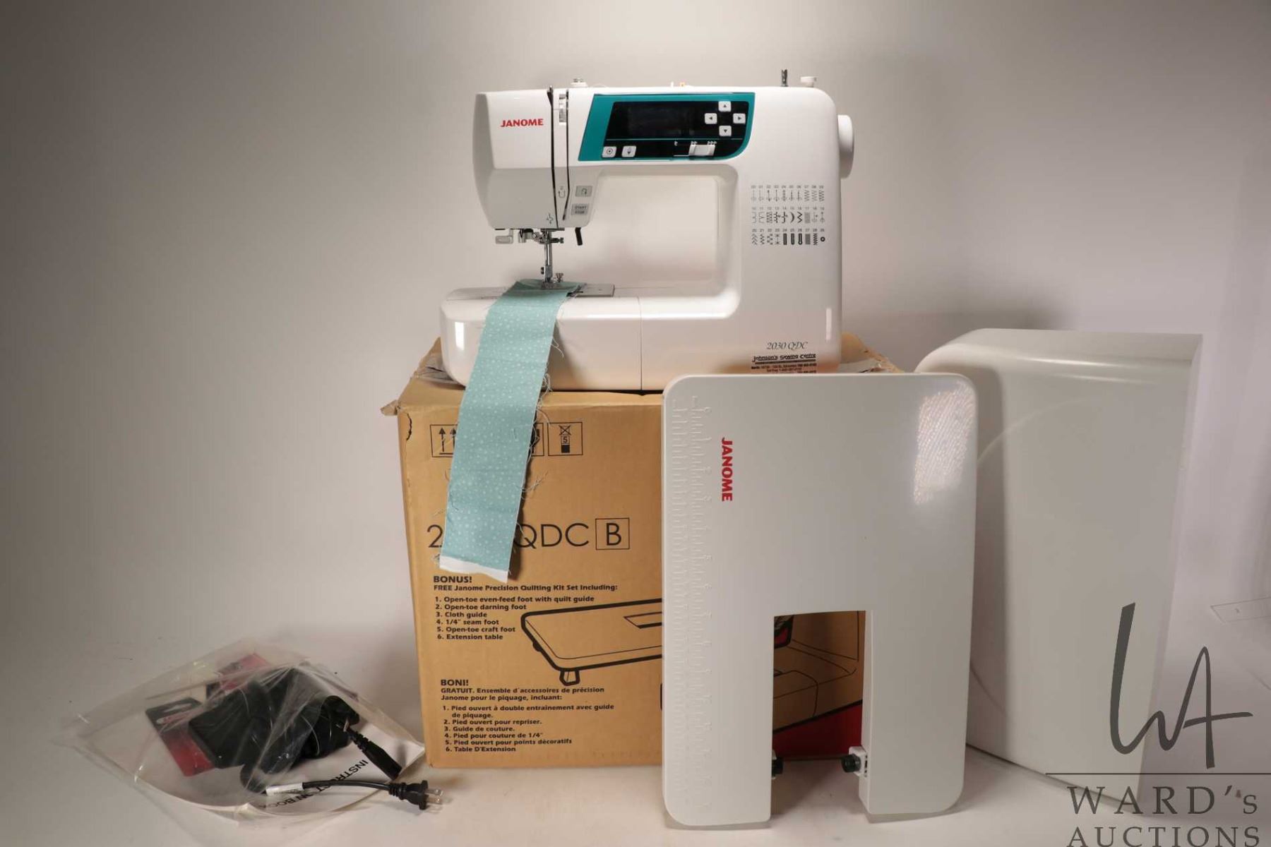 Janome 2030 QDC quilting sewing machine in box with accessories, working at time of cataloguing