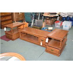 Three pieces of Vilas maple parlour furniture including two side tables and a coffee table