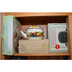 Collection of ladies items and small cabinet porcelains including Henry Birks cased mother of pearl