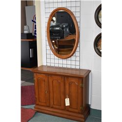 Small Kroehler side table with under storage and one drawer and a golf motif wine rack
