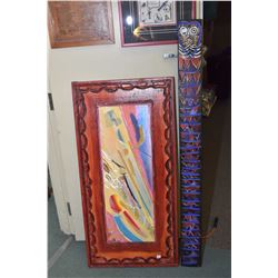 Two painted wall mount wood carvings including 4" X 2", one signed Eisert Hall