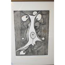 Framed original watercolour abstract signed by artist Hall '84, 30" X 22" and a framed two colour bl