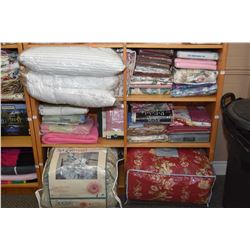 This item is not available for shipping. Local pickup only. Three shelf lots of brand new in package bedding including two double comforters, new pill