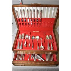Two wooden canteens of silver-plate flatware including servings for eight of Community flatware with
