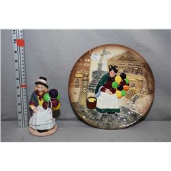 Royal Doulton figurine Bitty Pennyfarthing HN1843 and Royal Doulton plate The Old Balloon Seller D66