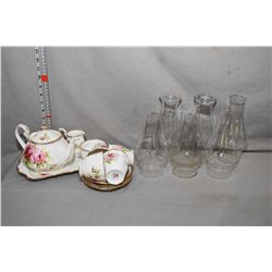 Royal Albert "American Beauty" tea service including teapot, cream and open sugar, four cups and saucer plus sandwich and six clear oil la...