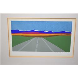 Two framed limited edition block prints including nine both road and mountain view, both nine colour