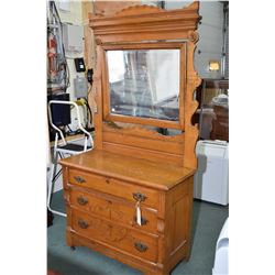 Antique three drawer dresser with bevelled mirror in large swivel frame, to match lot189