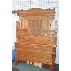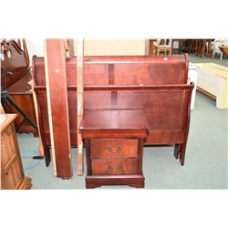 Double sized semi contemporary sleigh bed, headboard, footboard and rails plus a two drawer night table