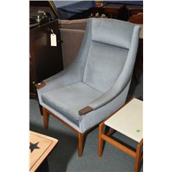 Pair of mid century modern teak framed velvet upholstered side chairs