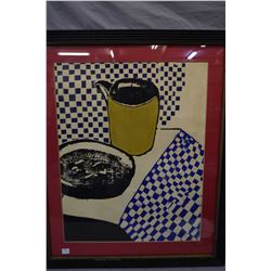 Two framed block prints including three colour kitchen graphic and a five colour desk graphic, both pencil signed by artist Eisert and both 24"...