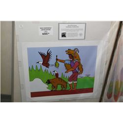 Two unframed limited edition prints including "Man changing into Thunderbird by Norval Morriseau 30/695 and "The bear Clan" by David ...