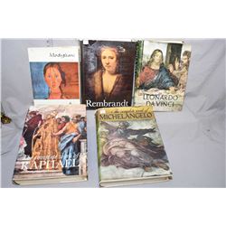 Five large art reference books including Modigliana, Rembrandt, Leonardo DaVinci, Raphael and Michaelangelo