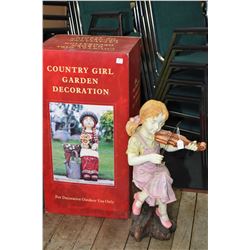 New in box "Country Girl" garden decorative planter, and young girl playing the violin 24" in height