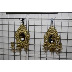 Pair of brass three branch candle sconces set with bevelled mirrors