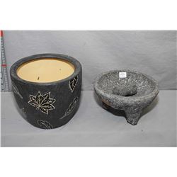 Glazed pottery plant pot and a mortar and pestle * 1/2" in diameter