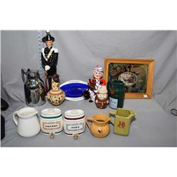 Selection of vintage bar ware including ale jugs, Sherry and Port dispensers, figural liquor bottles