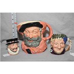 Three Royal Doulton character jugs including two mediums, Bacchus D6505 and Beefeater D6233 plus a l