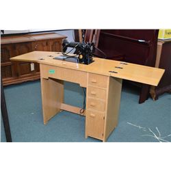 Vintage Singer electric sewing machine in one cupboard and three drawers
