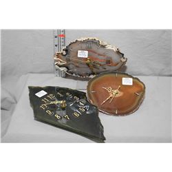 Three stone slab clocks including two desk clocks and a wall clock, all with quartz movements