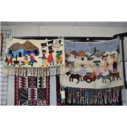 Two hand woven mohair wall hangings from Lesothos, South Africa including a 30" X 40" and a "19" X 40"