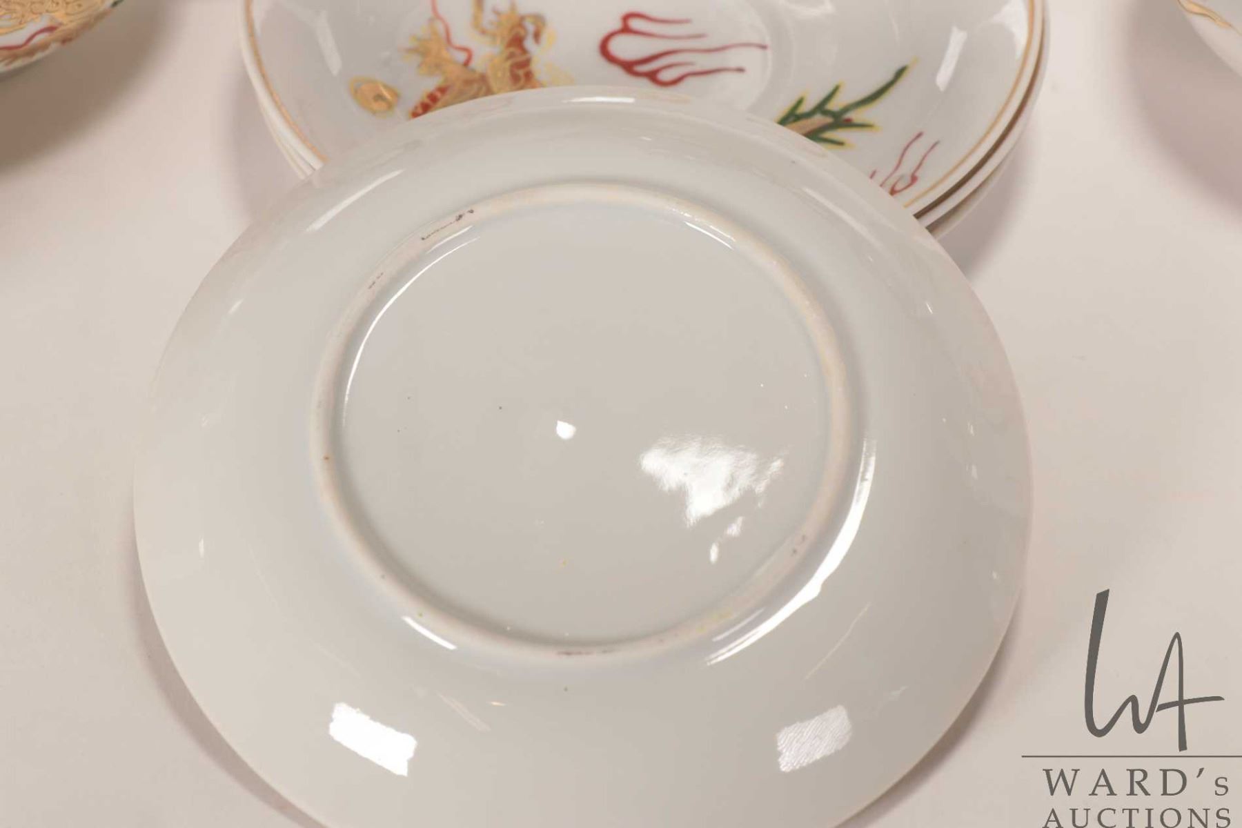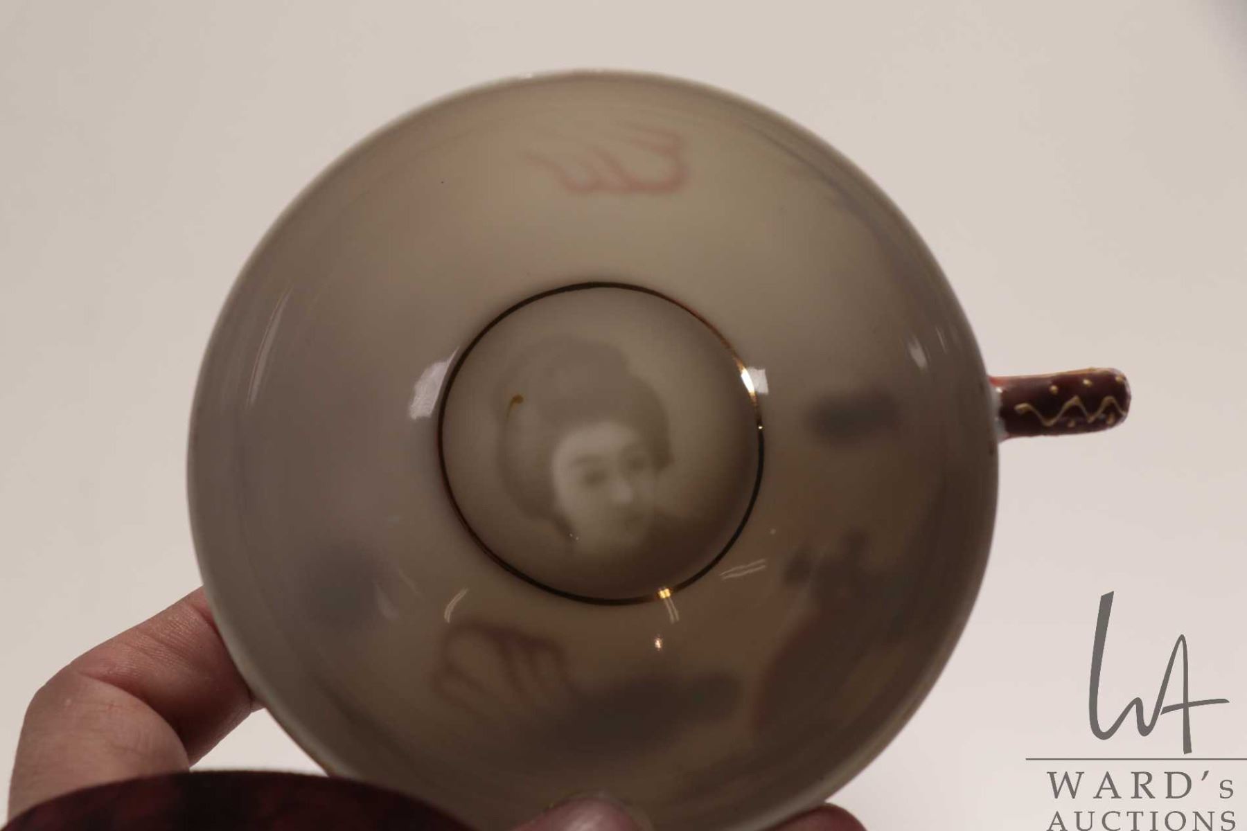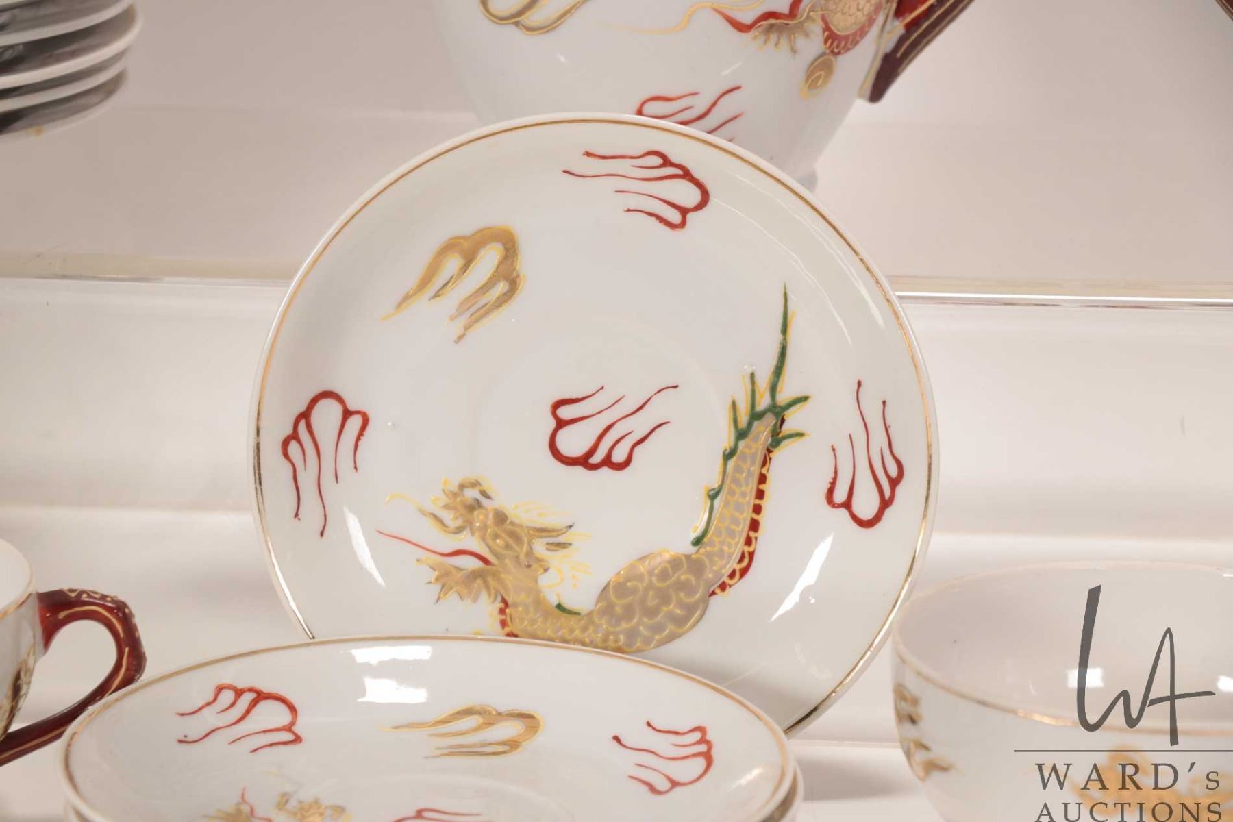 Japanese "Dragonware" Kutani porcelain tea set with moriage beaded detailing and lithopane Geisha in