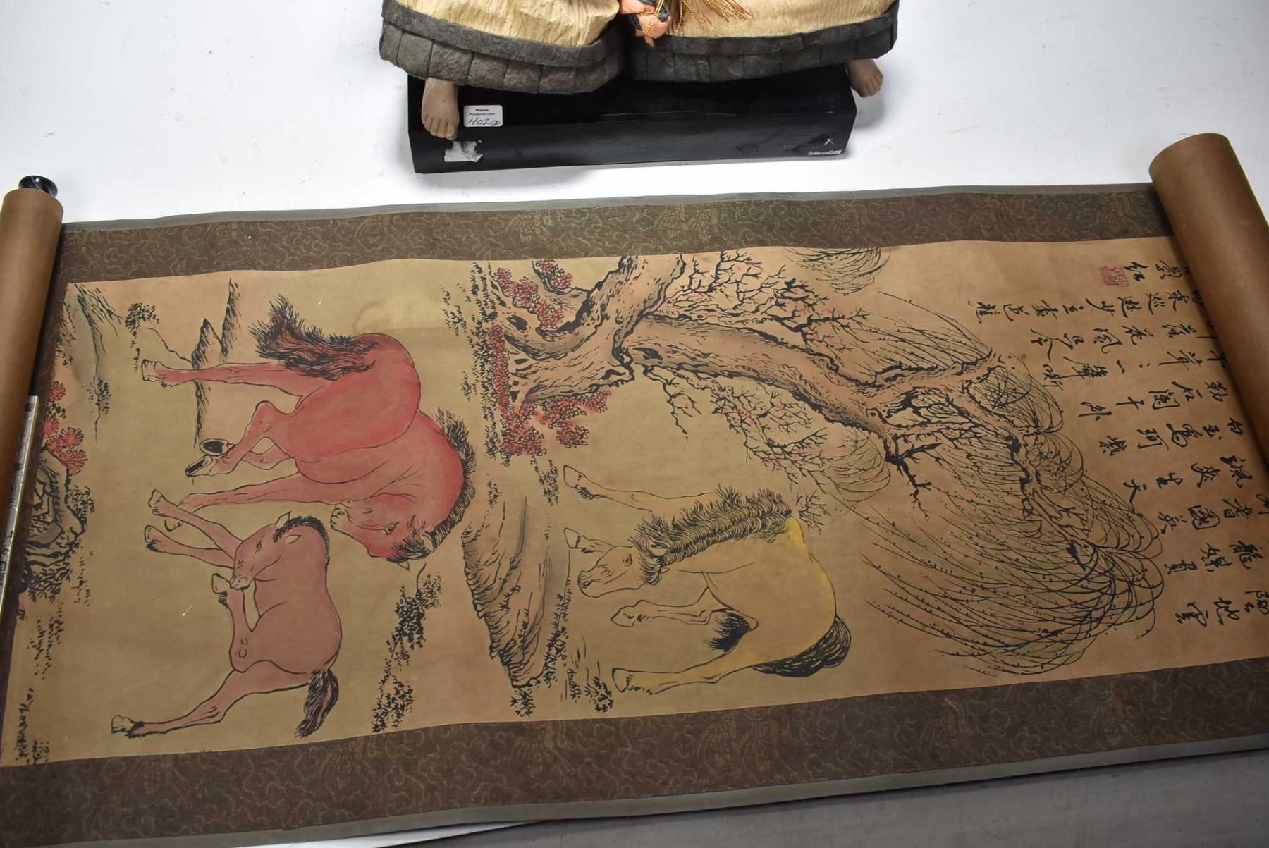 Japanese Shogun figure, 17" in height plus a Chinese ink scroll, signed