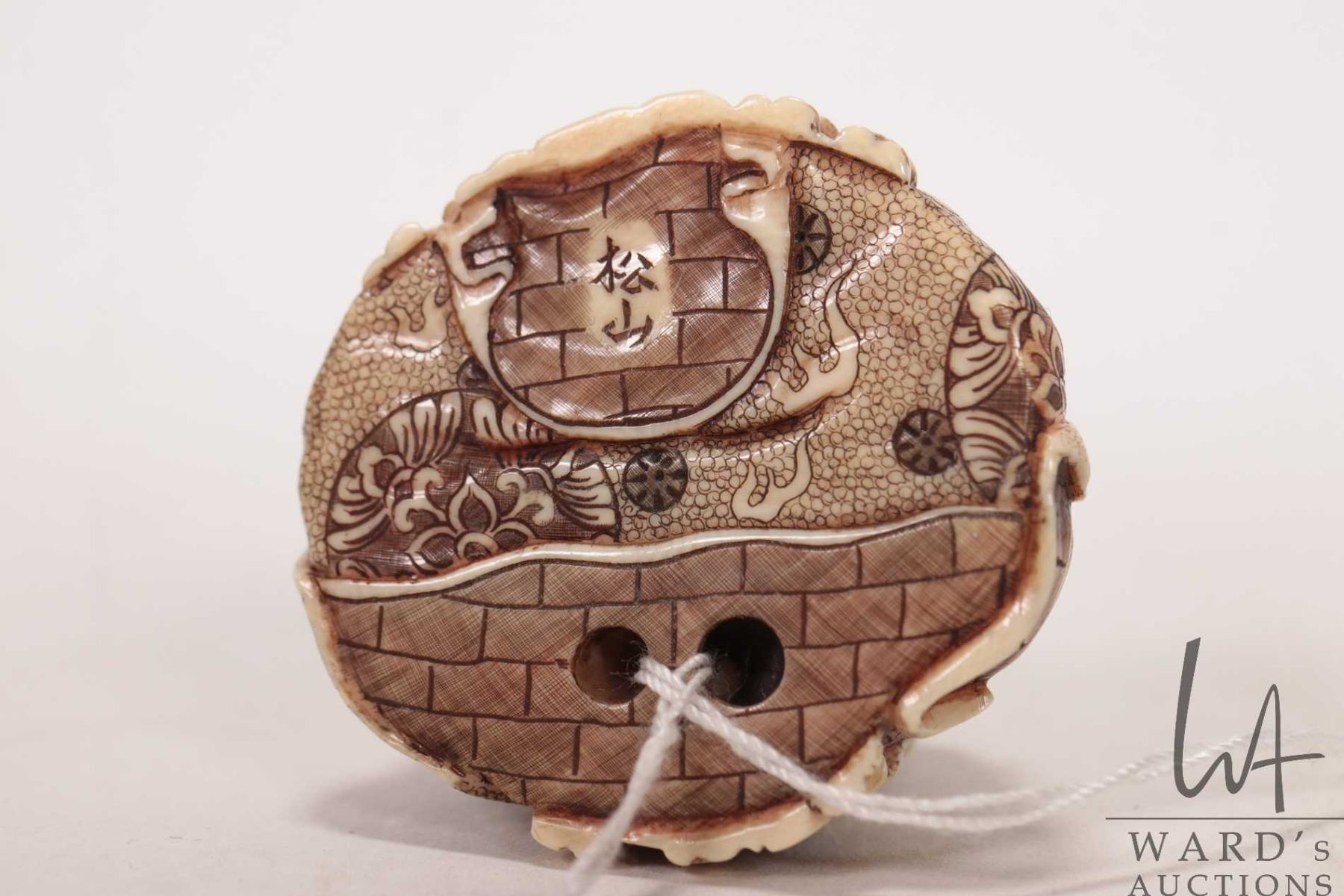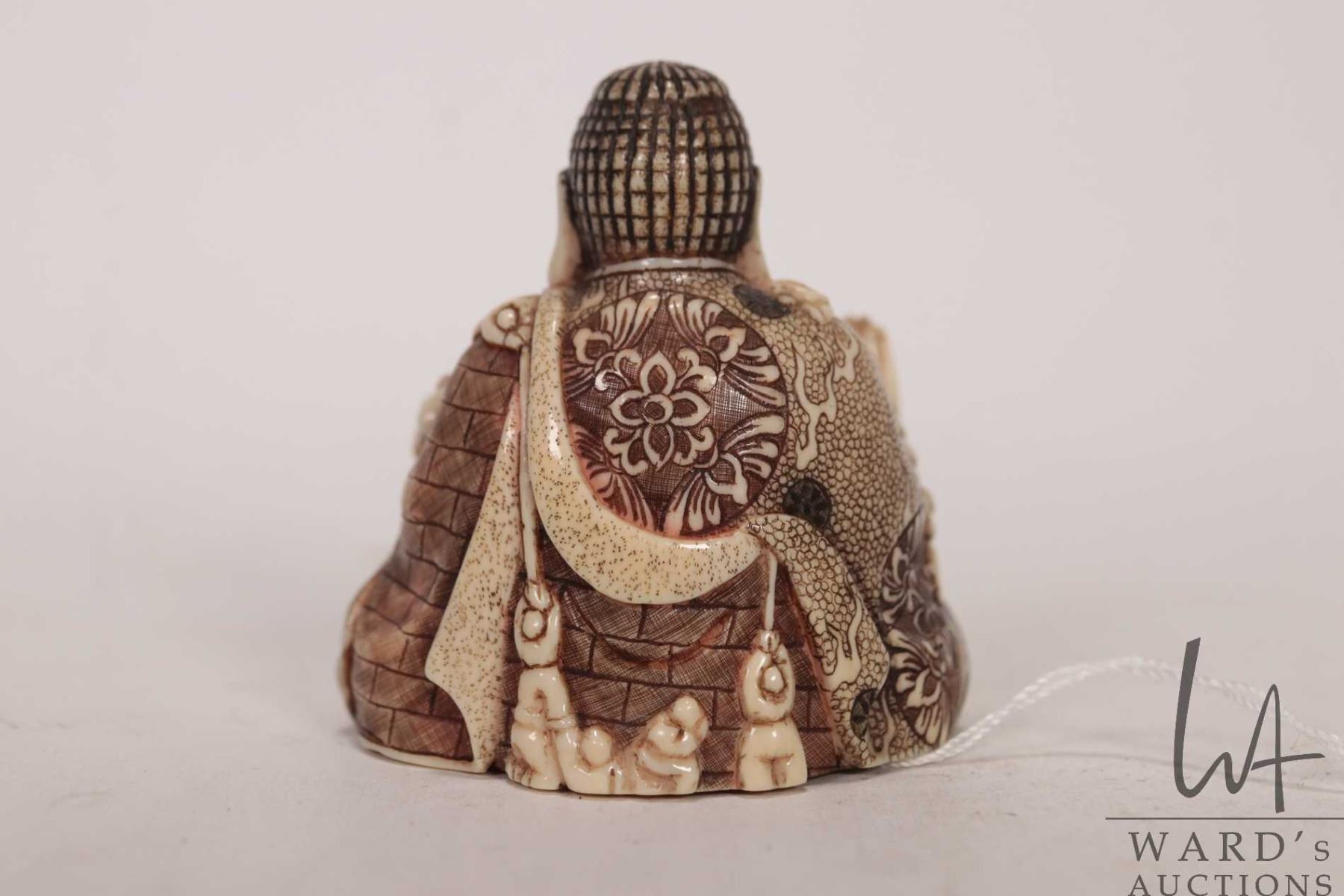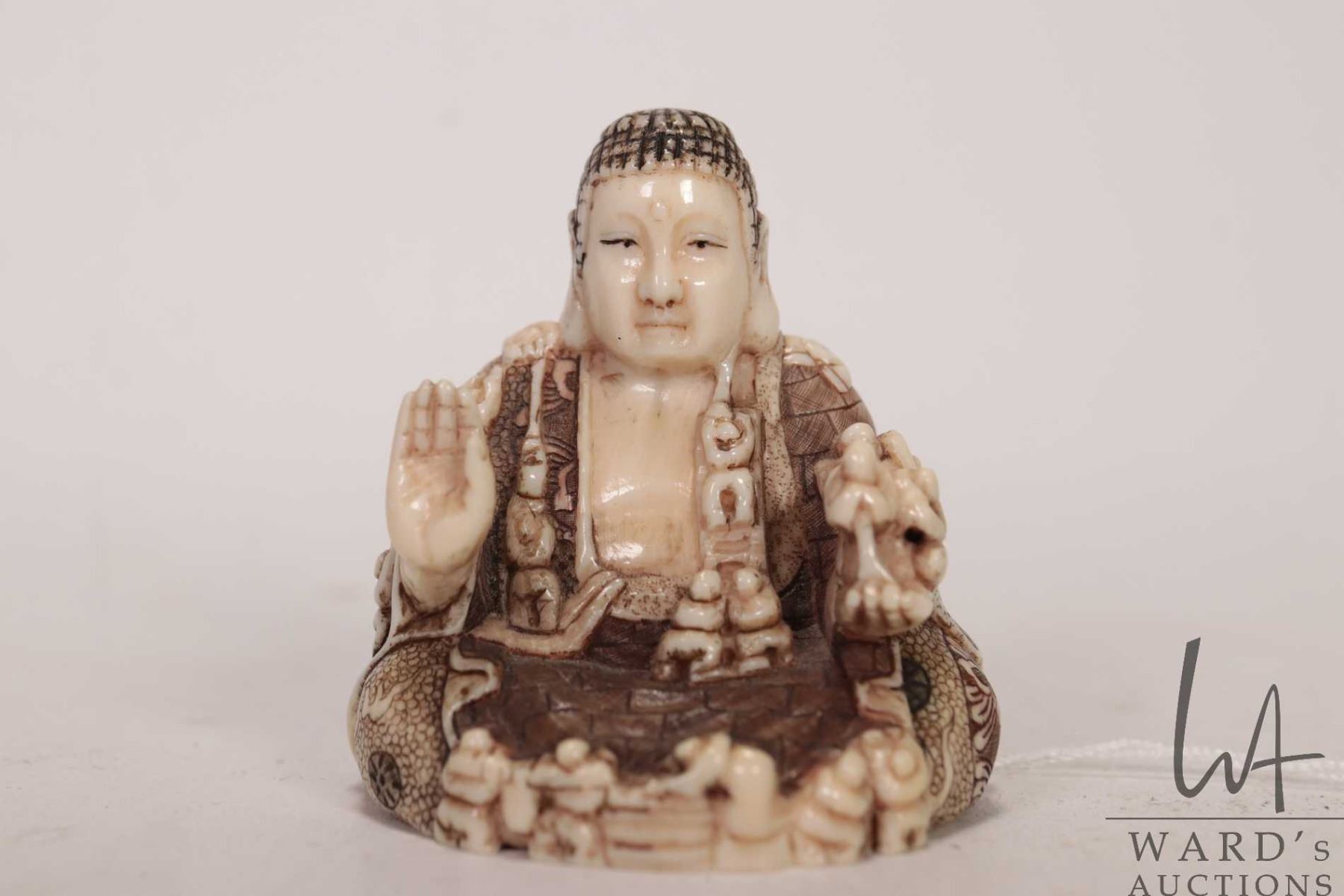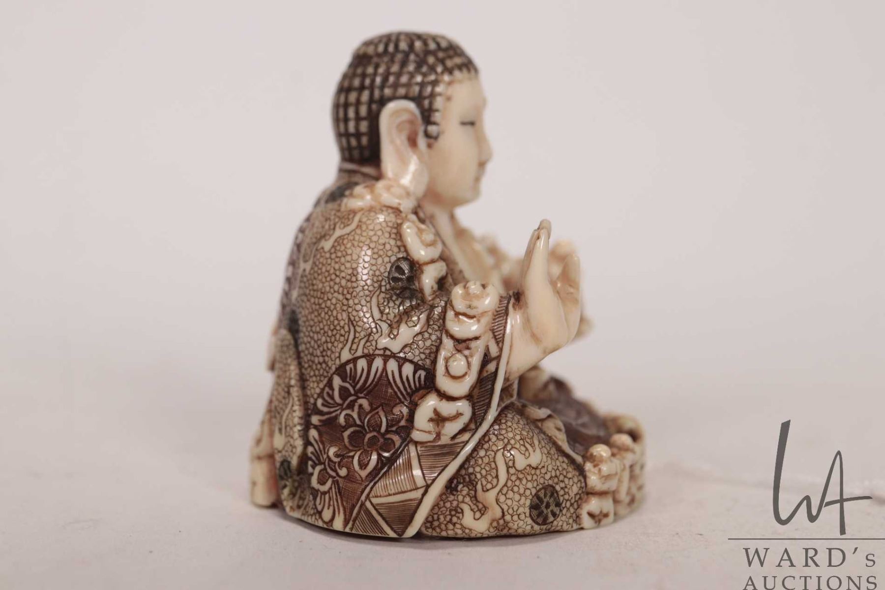 Japanese carved ivory Buddha netsuke, artist signe 1 1/2" in height