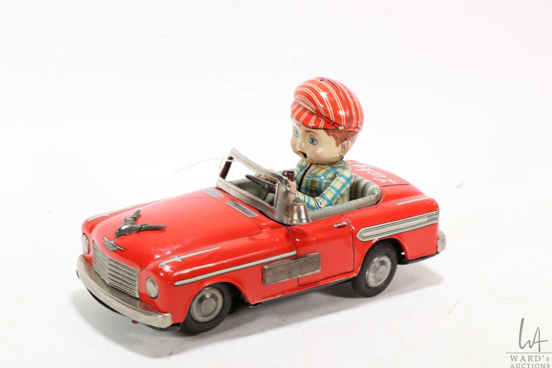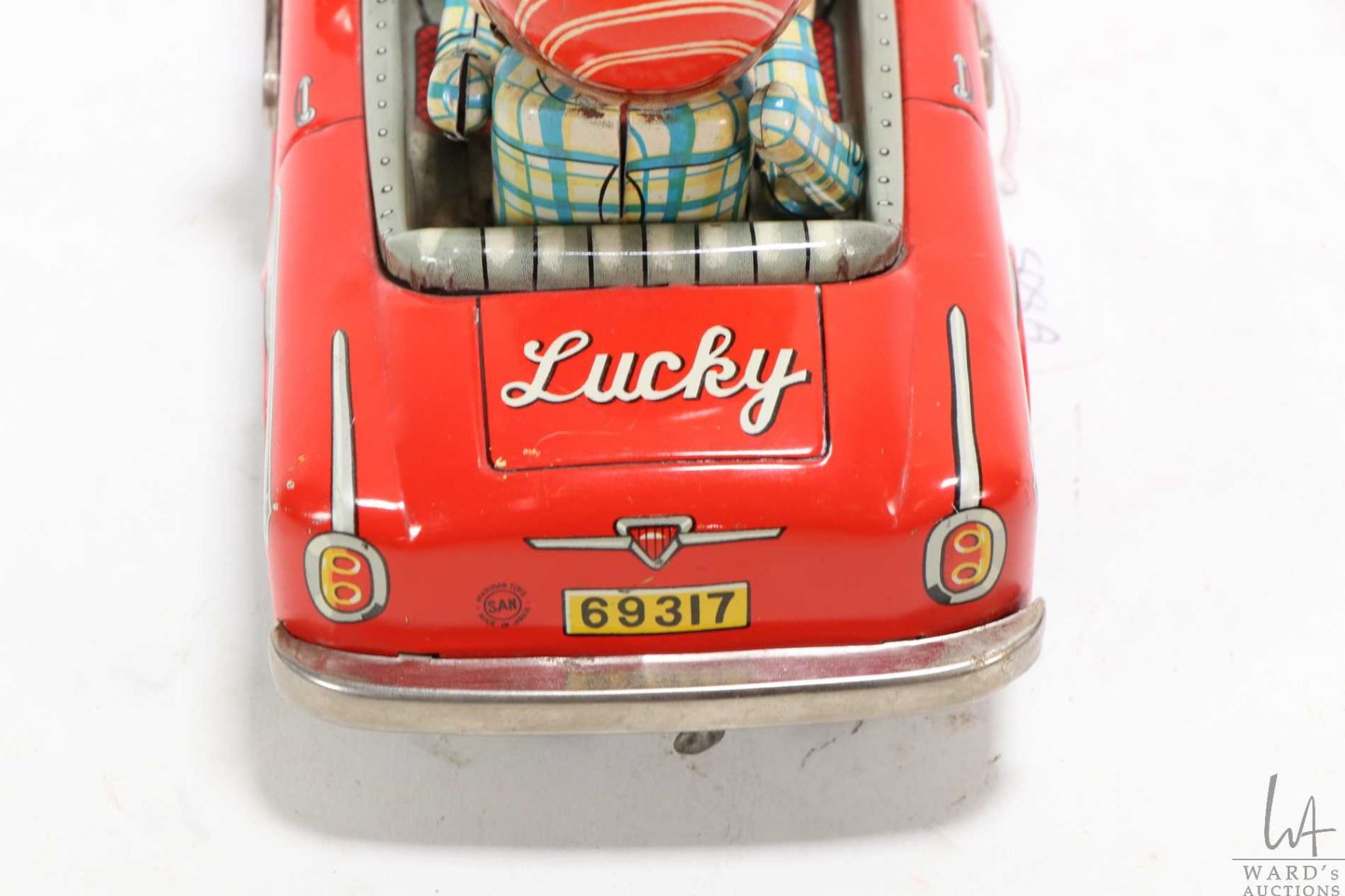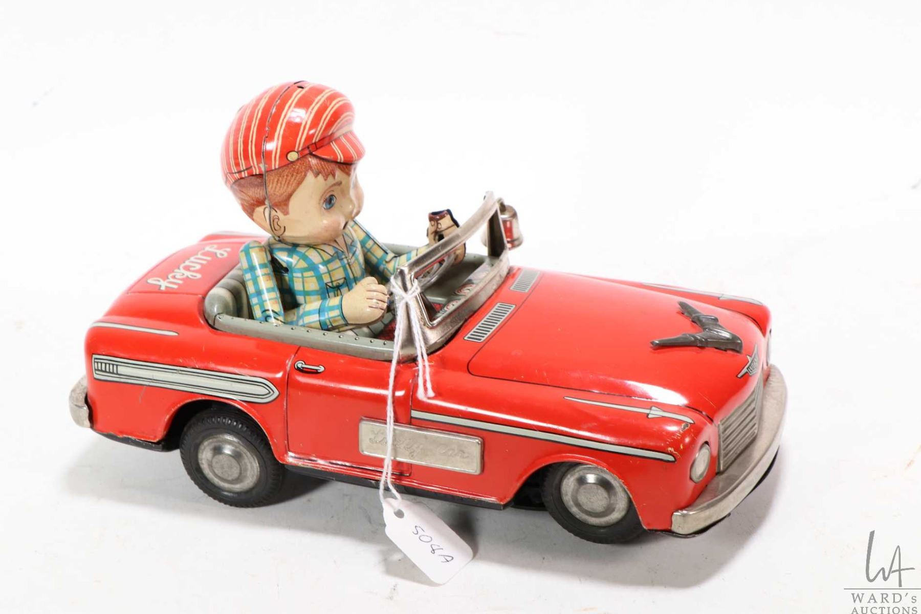 Japanese made battery operated tin plate "Lucky Car", made by Marusan Toys, not tested at time of cataloguing