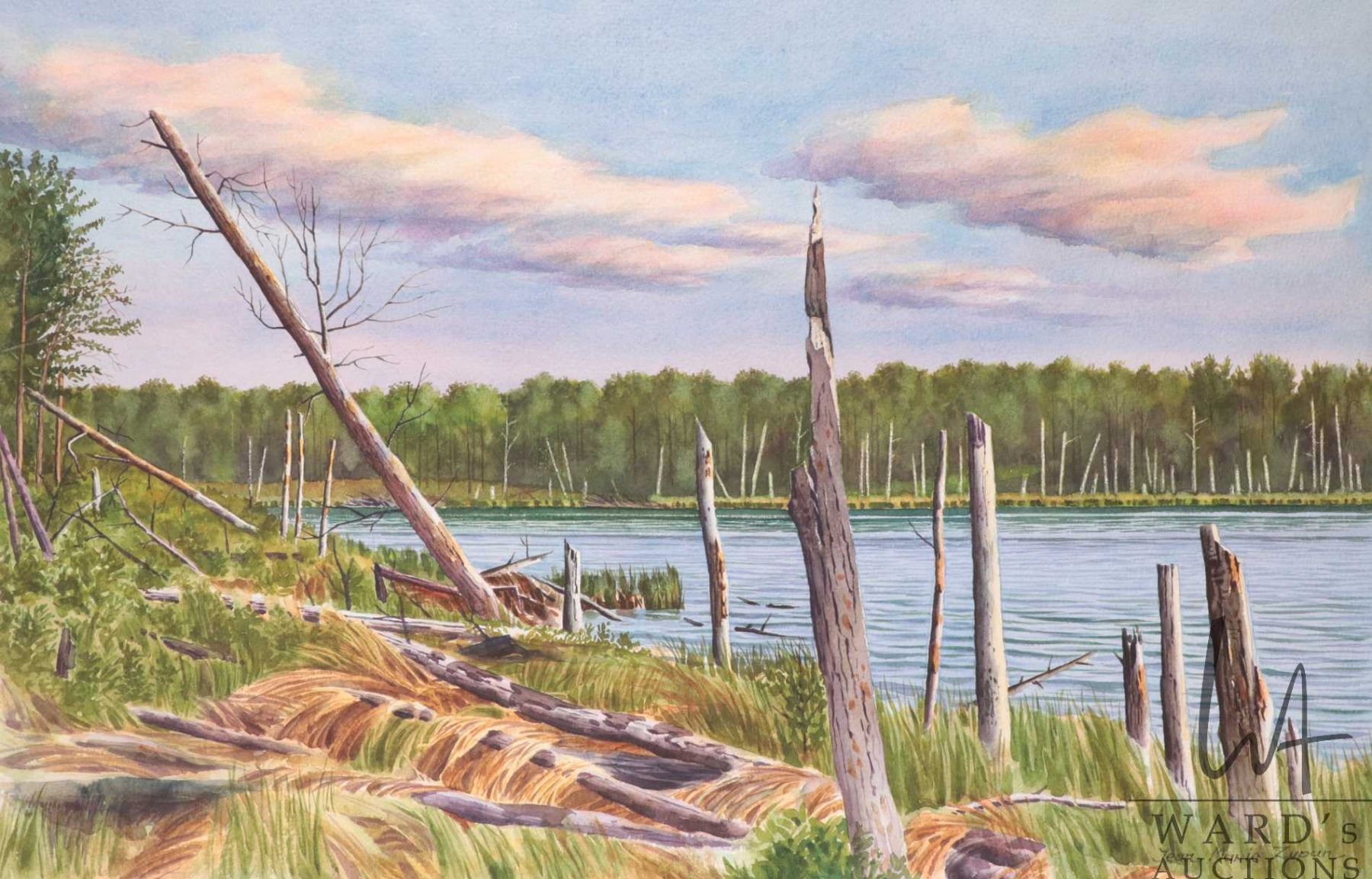 Jean Marie Zupon ( John M. Zupan 1941- 1998) original watercolour painting of a lake shore line, sig