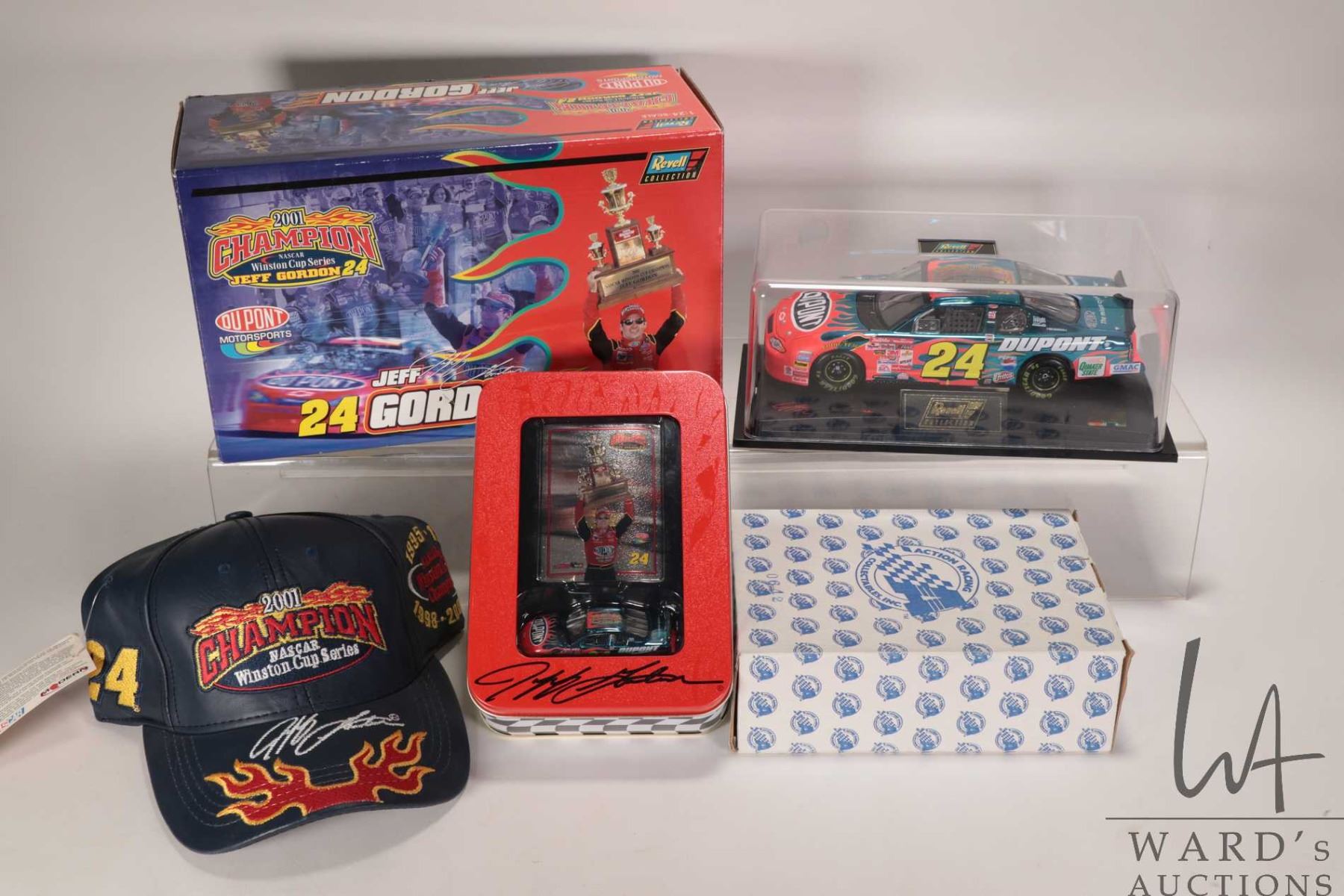 Jeff Gordon 24 limited edition Revell 1: 24 scale die-cast Nascar Winston Cup 2001 champion one of /40,024 and a Jeff Gordon #24, 1: 64 scale die-cast model one of / 37,650 plus a genuine leather Nascar 2001 Champion hat