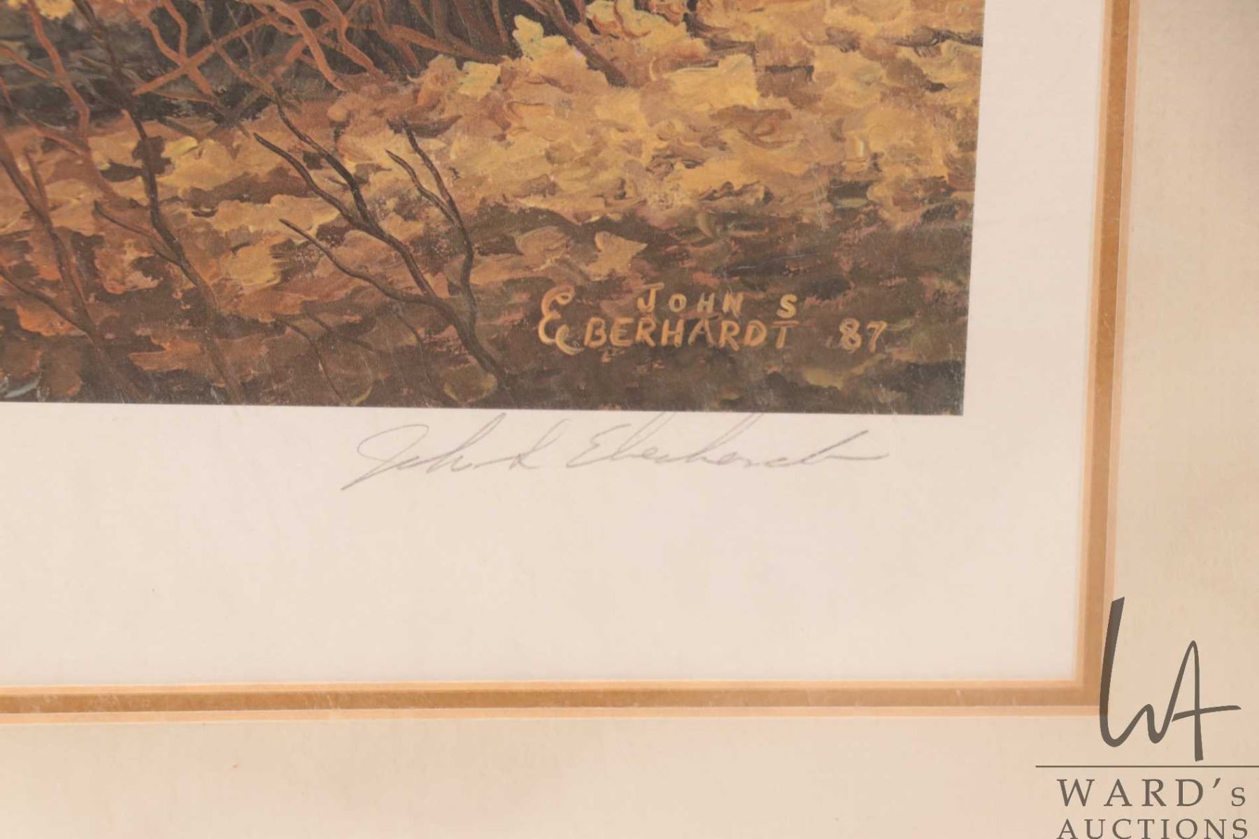 John E. Eberhardt, unframed matted limited edition print. Created for Ducks Unlimited 1987. Titled "The Bottomland Prince", 559/1600, pencil signed by artist. Overall dimensions 22" X 29"