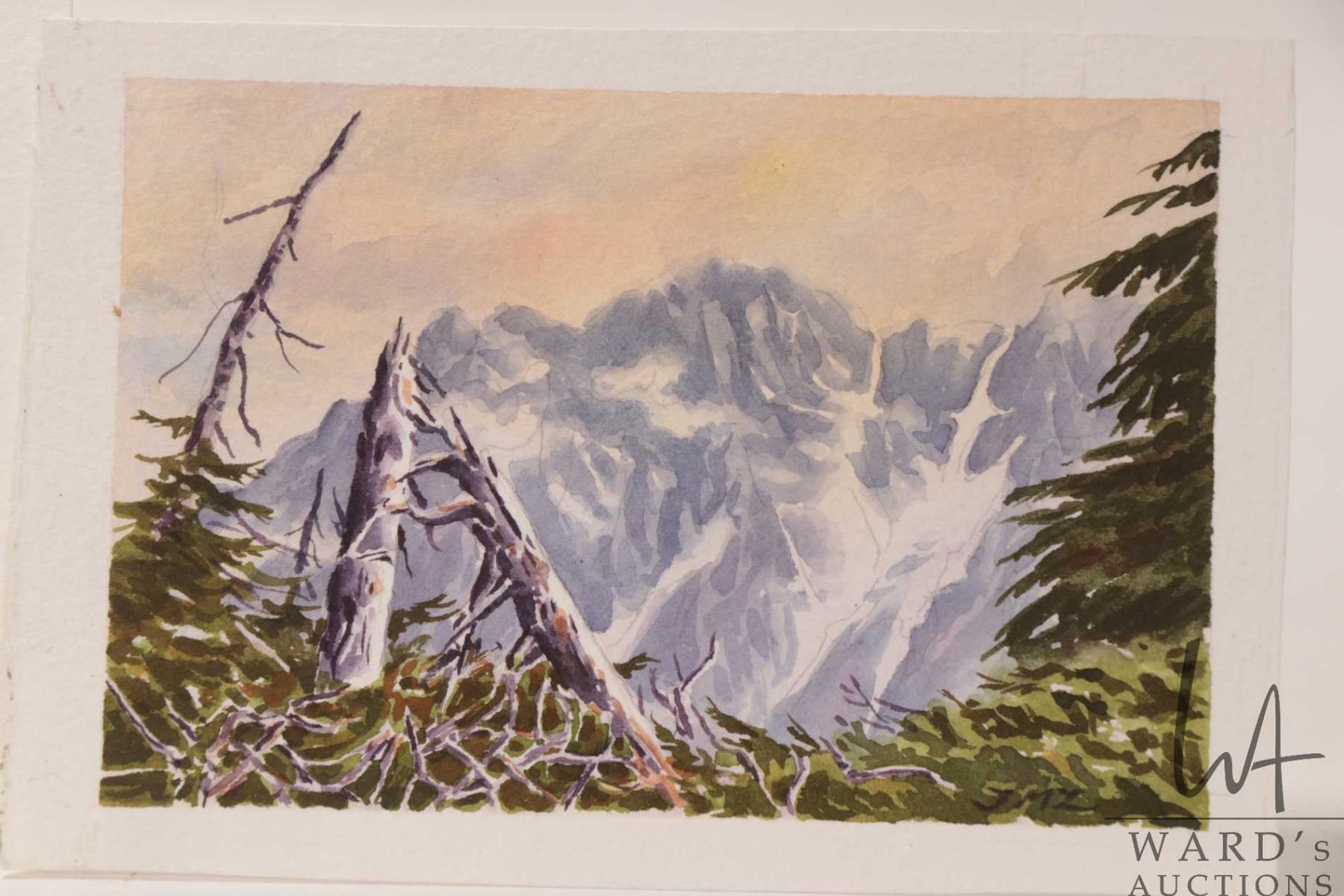 John M. Zupan (1941-1998) four original unframed watercolour paintings including "Above Rogers Pass" 3 1/4" X 5", " S. Wall of Mt. MacDonald", 3 1/4" X 5", "Asulkan Valey" 3 1/4" X 5" and "Mt. Michener", 4" X 6"