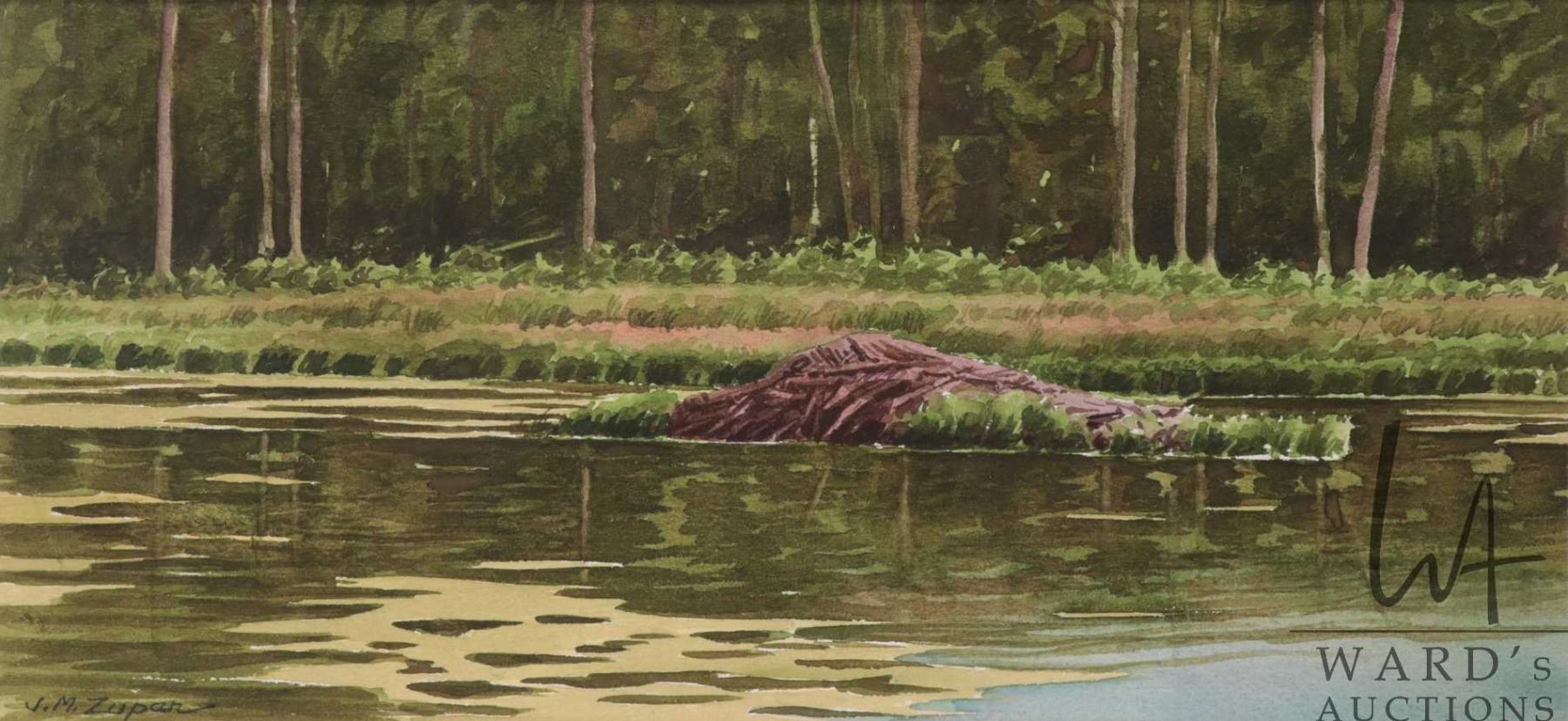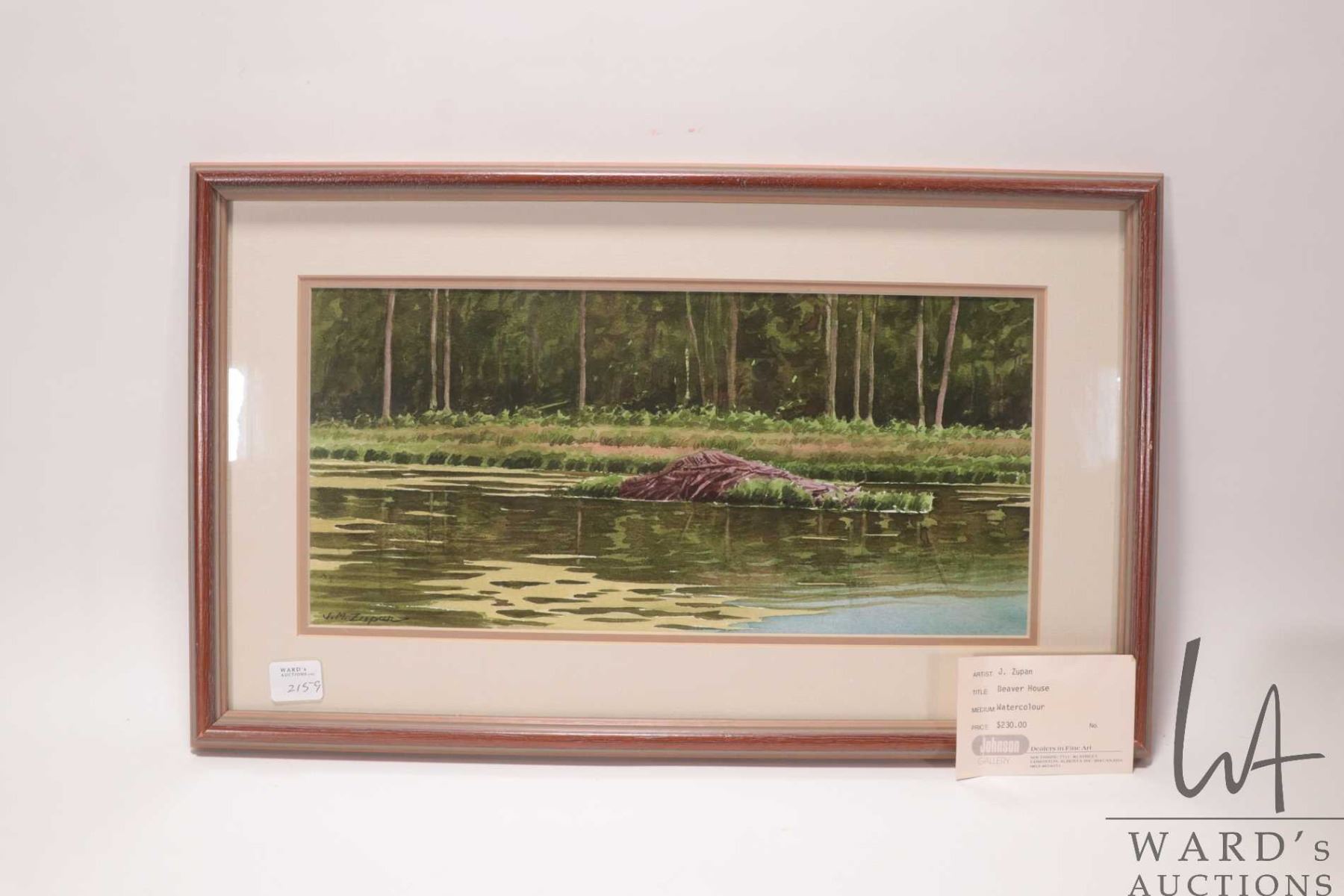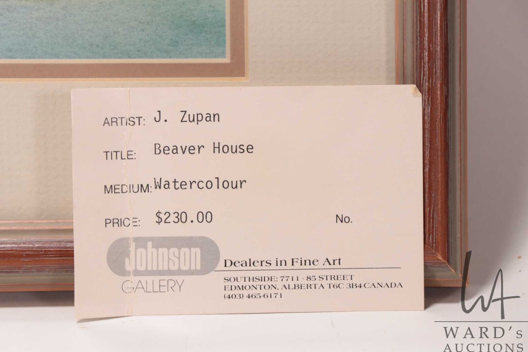 John M. Zupan (1941-1998) framed original watercolour painting, labelled " Beaver House", 6 1/2" X 1